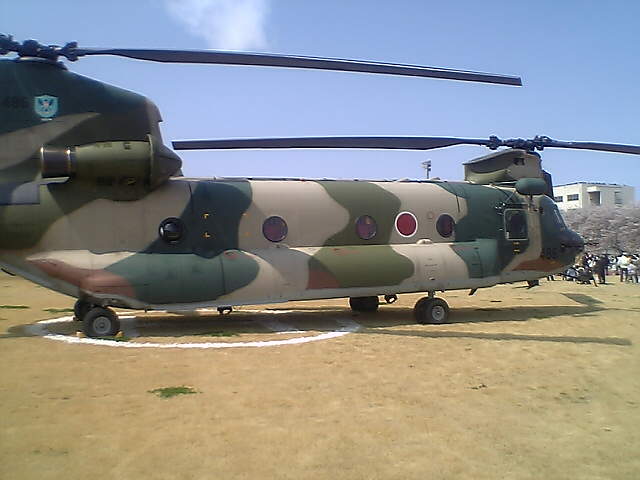 行ってきました。今年はちょうど桜も満開で花見客もいらっしゃいました。今年の初ブルーも無事見られたのでよかったです。 今年はグラウンドを解放して地上展示機も居ました。グラウンド中央付近に臨時のヘリポートを設営したようです。機体の下に丸にHのマークがはっきりと残っていました。で、下はその機体の写真です。 その一。 その二。 また、退役したF-1の垂直尾翼を利用したモニュメントも建っていました。