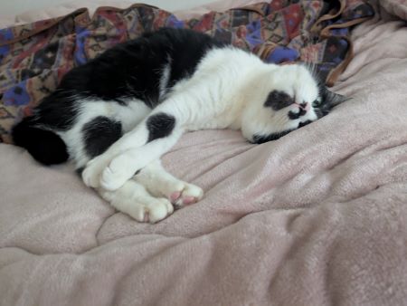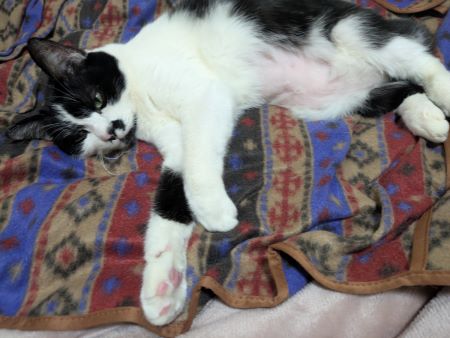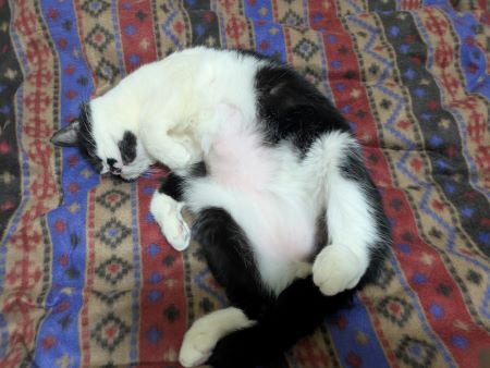 アトム君、剃られちゃったお腹の毛が再生してきたね
