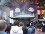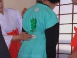 私が住んでいる地域では毎年1月7日に「お的」又は、「七草祭り」といううお祭りが神社で行われます地域は6地区に別れて、毎年1地区事に神社のお祭り事の係りがまわってきますつまり、6年に1回神事の係りがまわってきます今年は、私が住んでいる地区が当番なので、私が住んでいる地区から「お的っ子」が選ばれるのです昔は自分の子にやらせたい人が多かったそうですが、選ばれた家で近所の人々を呼んで食事を振舞わなくてはならなかったらしく、他にも大変だったのでやる人が年々少なくなってしまったそうですその「お的っ子」に我が家の長男が選ばれました、人寄せをしないなら、記念にもなるし、本人もやるといううのでお受けしました次男が「やりたい」と言ってましたが、この行事は長男でなければ駄目なので、あきらめてもらいました数日前から裃が届けられましたが着せ方がわかりませんとりあえず、しわがあったので、アイロンはかけてましたが長年にわたりつけられたしわらしく、とても頑固なしわでしたこういうしわが、わたしにできないように、祈るばかりです適当に裃を着せて神社に出発です神社はとにかく寒い!結局裃は、巫女さんに着せてもらいましたその後、神社でお払いですお払いの最中、後ろでお参りに来た人の金を鳴らす音や、お賽銭を投げる音が聞こえます背後から聞こえるなんて 何故か嬉しい気持ちになりました(神様になった気分よ♪)お払いの最中は扉を開けっ放しなので、気が遠くなりそうでしたお払いが終わり、お的を弓で射抜きます6メートル(昔は8メートル)程はなれた直径1.2メートルの的をめがけ矢を放ちます最初は我が息子、1本目見事命中!2本目ははずしました次は3年生の子です(お的っ子は2人選ばれます)力がないので、残念ながら飛びませんでしたとりあえず、6年生の面子はたちました無事に終わり、やれやれな半日でした夕方、姪家族がきました昨年の暮れから、4日まで旦那様の実家の札幌に行っていたので、今年初めてのご訪問です姪の長男の唯人君です1歳3ヶ月です最近しっかりと歩けるようになりました私の顔を見ると固まり、泣くのを我慢するようなのですが最終的には泣きます(汗)ちなみに、唯人君の横に写っているのは、唯人君のおばあちゃんですつまり、私の旦那のお姉さん早く私の顔を見ても泣かなくなってね(--:)