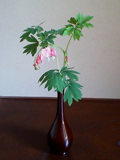 お花入れは 唐金の鶴首。からかねのつるくび。