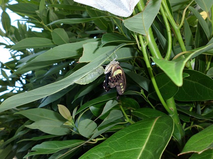庭にある楠に今年もアオスジアゲハが卵を産みました。去年は、ハエと蜂にやられて全滅でしたが、今年は数匹が成虫となって飛び立っていきました。
