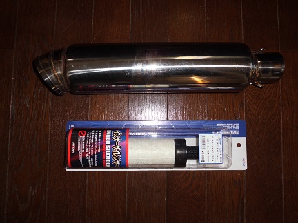頂いたマフラーの音が大きいので消音材を買ってきました。ギリギリのサイズなので中に入らず、内側を削るのに2日がかり( `ー´)ノ後はハンマーで叩いて押し込みました('ω')ノ