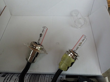 なかなか格安のヘッドライトが見つからないので、在庫を改造して取り付けしてみました!(^^)!まずまずの明るさなのでこれで様子を見てみます。右側がノーマル、左側が改造するランプ(#^^#)