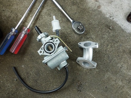 モンキーのキャブレターを交換しました。ノーマルより少し大きい為仕方なくフレームをカット、錆止めをスプレーして黒塗装。エアークリーナを取り付けて完了と、思いきやアクセルワイヤーが短い"(-""-)"キャブ側の取り付けナット外してとりあえず走れる事になりました。あとはスプロケット…( `ー´)ノ