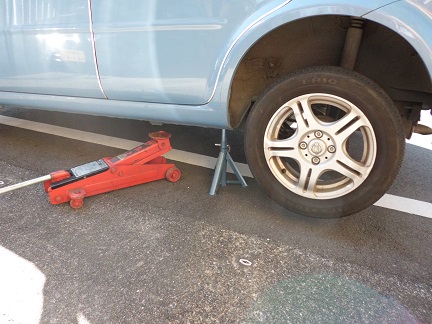 今日は1か月ぶりのお休み、タイヤローテーションをしました。ガレージジャッキで車輛を持ち上げて安全の為にウマ入れて…。片ベリしてました。 使用工具は、ウマ、ガレージジャッキ、クロスレンチと電動インパクトです。ついでに洗車をして終了。ローテーション金額で今夜は飲みに('◇')ゞ