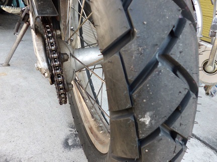 CRF250Lのタイヤ交換をしました。ほとんどは友人がやってくれました・・・(*^_^*)ついでにチェーンが伸びていたので一こまカット(^_^)v