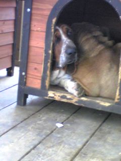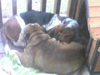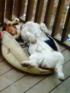 最近の銀次と弁慶は本当に仲良しいつも一緒でないと気がすまないのは弁慶寒いから銀次のそばへ寄っていく。このあいだなんかは、寒くなってきたのであたしお手製の毛布を作ってあげたら、銀次が小屋の中でご満悦いつも以上に爆睡弁慶は一人ぼっちになったのが寂しかったようで、どうにかして銀次を起こそうと必死にお手手や顔をペロペロ~~~んがっしかし銀次の毛布好きには勝てず。。。ぜんぜん起きない銀次の小屋の中へ無理やり入ろうと試みていました( ´,_ゝ`)プッ いつもなら2匹一緒にミラクルで入るんだけど、なにしろ銀次が岩のように動かないから前足だけつっこんであきらめた弁慶。そして朝2匹を見たらこんなことに。。。。まるでドーナツのようです。お互いを暖めあっています☆でも、弁慶。銀次のお腹にうもれすぎて呼吸が苦しそうでした。でも、なぜかこの体勢を崩しませんよっぽど心地いいんだろうな~いつも銀次は弁慶の背中にあごのっけてるんだけど。その姿はまた今度♪ブルドッグとバセットって仲良しなのかな~?それとも銀次が優しいのかな~?