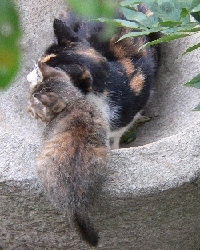 親のミケは毎朝  ごはんくれニャ~  とやってくるのですが、ちょび猫の方はなかなか人前に姿を表さない。