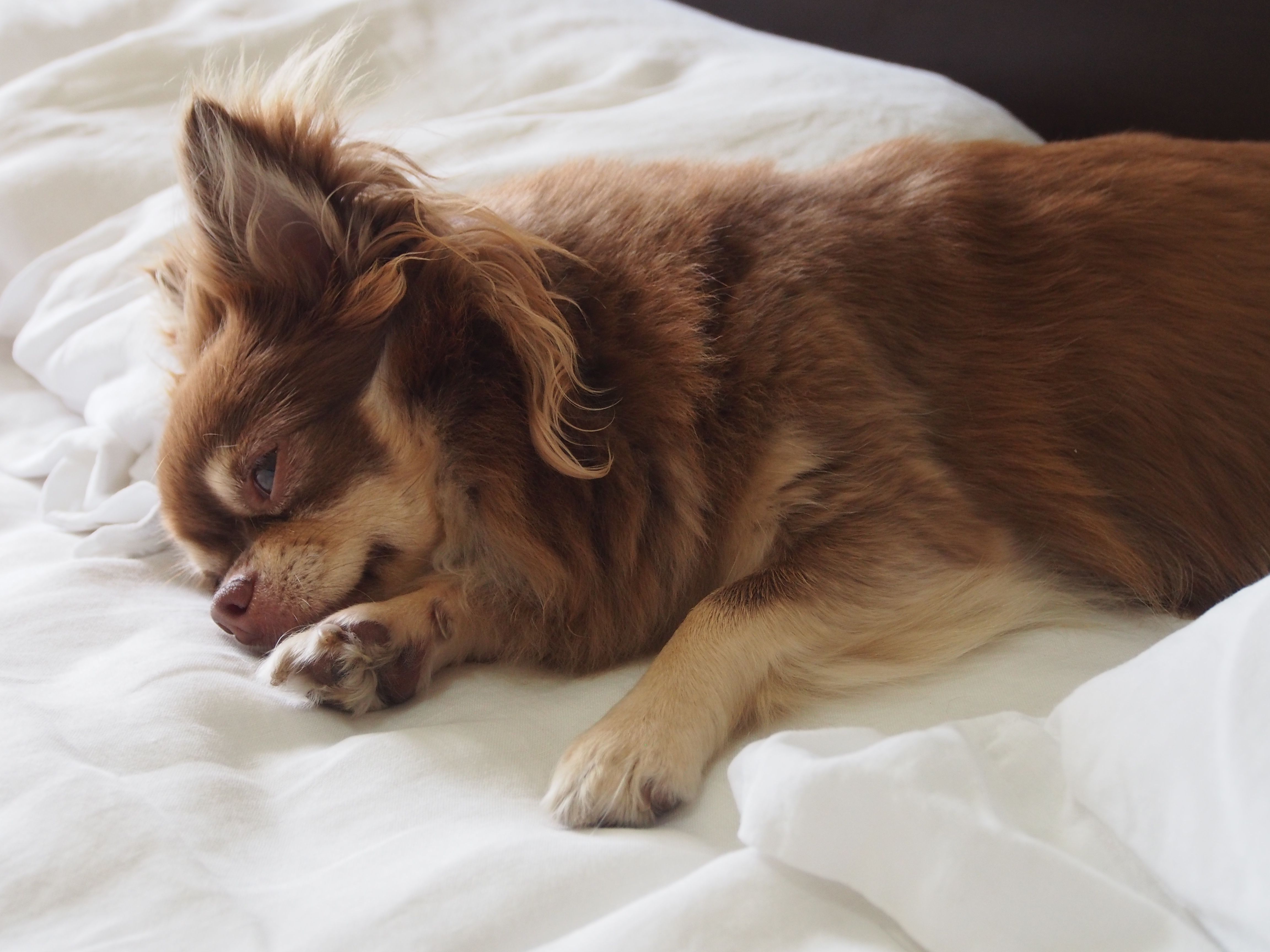 おはようございます。朝のまどろみ中のチョコです。きゃ、きゃわいいチョコ、しっぽの生えた天使!!運命の出会いから半年、愛しいが止まりません。あんまり幸せすぎて、来た時と同じように、突然いなくなってしまうのではと時々不安になります。それはさておき。今日はチョコの朝の日課、にゃんにゃかタイムのお話です。もともとはこれ、チョコが平日ずっとひとりでお留守番なので、出勤前にちょっとイチャイチャしようじゃないか、という時間でした。にゃんにゃか、にゃんにゃかと声をかけると喜ぶ(ように見えた)ので、にゃんにゃかタイム。北海道に移ってからは、私が仕事をやめて、朝、時間ができたので、グルーミングタイムとなりました。では、その一部始終を。まずは全身マッサージでウオーミングアップ。のどもなでなで。ほえ〜っとなるまで、さらになでなで。さきに歯みがきが待ってるからね、フフッ。次はおみみの掃除。今日はベタベタなくてきれいだね。ママ、ちょっと張り合いないわあ。チョコ、耳垢がついた綿棒なめないで!!そして、チョコに見えないようにこっそり歯磨きクロス(=夫の古Tシャツ)を取り出して…さあ、いくよ、チョコ。ちょっと我慢だよ。やめろと言われてもこれだけはやめません。チョコはうちに来て1ヶ月後に口の中に大きな腫瘍が見つかって、手術をしたのです。腫瘍は良性でしたが、お口の健康管理は飼主の大事な仕事。もう二度とチョコにあんな思いはさせたくないのです。でも、これでも大分慣れたんですよ。最初は全く口を開けてくれませんでした。私自身も嫌がるチョコの口に、容赦なく指を突っ込むことに慣れました(笑)。もう少し慣れたら、歯ぶらしにチャレンジです。歯茎も念入りにチェックします。はい、今日もいい子でよくがんばりました。普通はこの後、ブラッシング。この日は、トリミングの翌日だったので、ブラッシングは省略です。で、この後しばらく仲直りのイチャイチャをして、にゃんにゃかタイムは終了です。よっ、チョコ!今日もかわいいね。こころなしか、すっきりしたお顔。ブログランキングに参加しています。まんまるおでこをポチッとしていただけますとうれしいです。にほんブログ村