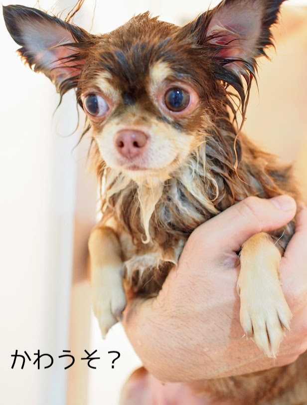 チョコをお風呂に入れるのはうちでは夫の担当です。私はこれまでお風呂場で何が行われているかまったく知らなかったのですが、聞いてみると、なんと!!シャワーを嫌がるので、最近は、ぬるいお湯をはり、一緒に入っているそう犬と一緒にお風呂に入る是非はさておき興味津々でチョコの入浴タイムをのぞいてみますと...チョコがまんざらでもなさそう顔でお風呂に浸かっています。チョコを抱く夫はというと、なんとも不思議な表情です。くすぐったそうな、照れたような顔。そうか。かわいくてたまらないんだ。腕の中にいる小さなカワウソちゃんが。嬉しくてたまらないんだ。チョコのお世話をできるのが。チョコったら、チョコったら。ほんとうにほんとうにありがとう。パパをこんな幸せにしてくれて。結婚12年、パパのこんな顔は初めて見たよ。最近、すっかり泣き上戸になった私は、性懲りもなく、また涙、涙です。==========================実は私、チョコが来てから時々思い出すことがあるのです。まだ実家にいた頃のこと。近所にゴールデンレトリバーを飼っているご夫婦がいて、うちの親が時々、「あの家は子供がいないから、犬を溺愛して」というようなことを言っていたことを。そこに深い意味はなかったのでしょう。親世代にとっては、ある程度の年になれば、結婚し、子供を育てる、のが当たり前だったというだけのこと。もちろん、後に、自分の娘が長い不妊治療で身も心もボロボロになってしまうなんて想像もしていなかったはず。でも、当時の私はその言葉が少しひっかかり、それはそのまま私の中で呪縛となったようです。チョコがかわいくて、愛しくて、どんどん心がチョコに傾いていくと、心の奥底で私は子供ができなかった悲しみをチョコで埋めようとしているのかな、と思ってしまう。チョコをかわいがる私を、周りの人は「かわいそうに。子供がいないから」と思って見ているのかもしれない、と思ってしまう。でも、幸せそうに湯船でチョコを抱いていた夫を見て、もうそんなふうに考えるのはやめようと思いました。つまらない思いにとらわれ、こんな幸せな時間に自分で水を差すなんてくだらない。私が幸せかそうでないかは、私が決める。そもそも、チョコにだって失礼です。チョコは私の悲しみの代償などではありません。自らの生を幸せに全うすべき、一つのかけがえのない命です。不思議なご縁で巡り合った、私たちとチョコ。限られた時間を思う存分楽しめばいいのです。そして、親バカデレデレは存分にこのブログに垂れ流しましょうそれにしても、気がつかないまま親から受け継いだ価値観というのは強固ですね。私には、目立ってはいけない、慎ましい格好をしなくてはいけない(笑)という呪縛があったことにも最近気づきました。去年、ダンスの競技会で、ド派手なメイクに、ショッキングピンクのミニドレスで、初めて表彰台に登った時、「が〜はっは!やってやったぜ〜」と、心が叫んでました。最後まで読んでいただきありがとうございます。↓応援クリック、励みになります。にほんブログ村↓よろしければ読者登録も!!