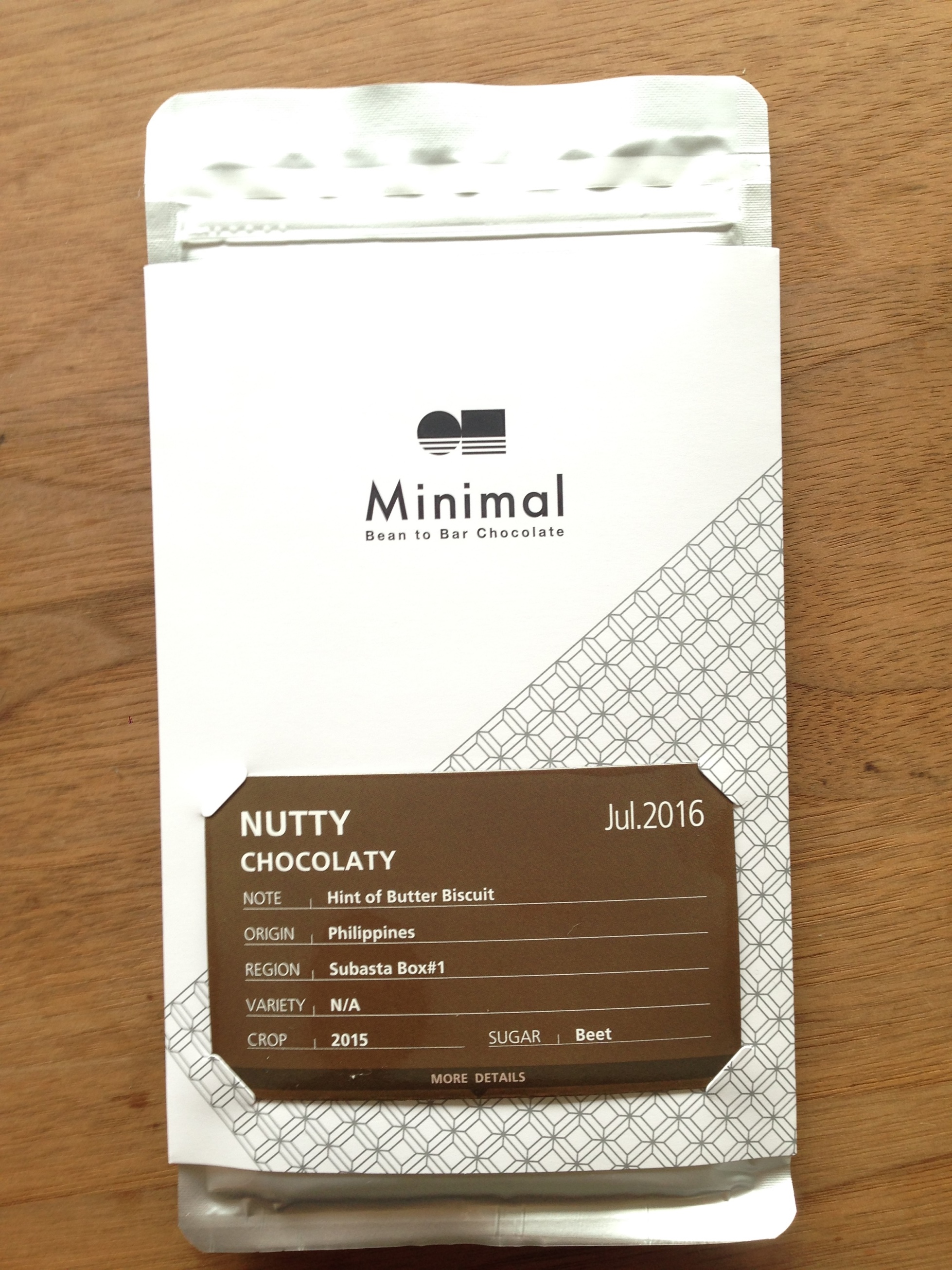 銀座まで来たついでに、こちらに寄ってみましたチョコ好きの私が大好きなお店の2号店が銀座に出来たんです松屋の2本裏手の道。ありました、小さなお店Minimal銀座 Bean to Bar Standこちらはチョコレート専門店の中でもBean to Bar専門店豆(Bean)から(to)チョコタブレット(Bar)ということで、自社工房でカカオ豆から板チョコレートができるまでの全工程(選別・焙煎・摩砕・調合・成形)をやっています普通のお店はクーベルチュールという既に精製された製菓用のチョコレートを買っていることが多いです。お店に入るとカカオの香りが一杯もうそれだけで幸せ試食をして美味しかったフィリピンのスバスタ地域産のタブレット(\1296)を購入しました。専用のジップロック式の袋に保冷材を入れてくださり、夏でも安心仕様に包んでくださいました。ちなみに包装の紙部分は取り外せるようになっていて、チョコの詳しい説明が書かれています。CACAO RATIOが高いほどカカオの比率が高くなるのでビターな感じかなTEXTUREの186μmはカカオの粒子径ですがかなり大き目です。一般的なチョコレートは20μm程度で滑らかな食感にするのですが、こちらのお店はこの大きいカカオ粒子が特徴で、独特のザクザク食感になります食感とともにカカオ本来の味や香りが良く残るので、産地ごとの味わいをしっかりと楽しめます焙煎時間・温度は良く分かりませんが、珈琲と同じように大きく作用するものなんだと思います今回のチョコはビスケットのような香りということですが、まさしく。ナッツ入りのビスケットのような香ばしい香りと、ザクザクのカカオの食感がマッチ。この粗挽きの感じがすごくいいです。味も香りも超強くって、美味しいまた行きまーす!!Minimal銀座 Bean to Bar Stand東京都中央区銀座3-8-13 1Fhttp://mini-mal.tokyo/http://tabelog.com/tokyo/A1301/A130101/13196230/私が書いたレビュー→http://tabelog.com/rvwr/000372100/rvwdtl/56455229/