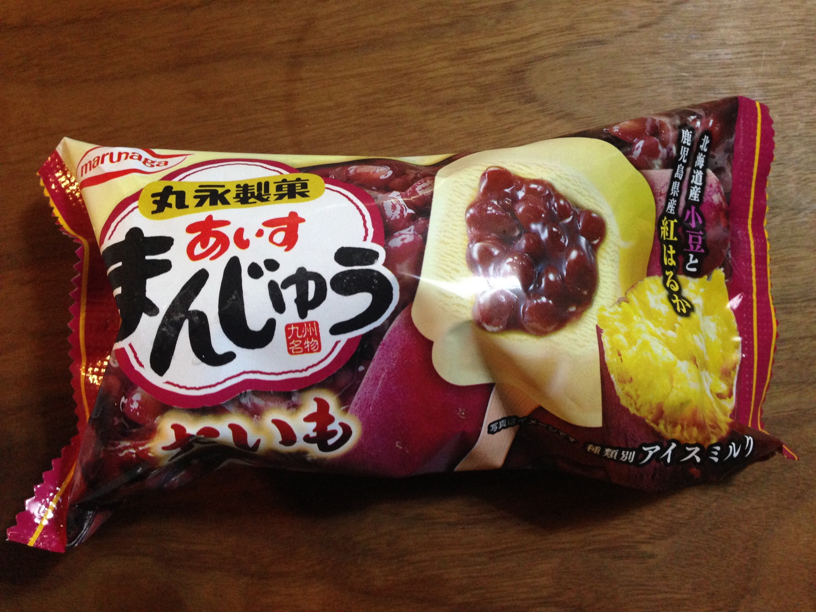大好きな丸永製菓のあいすまんじゅう近くのスーパーのアイス売り場を見ていたらおいも味(\99+税)を発見鹿児島県産の紅はるかを使っているんだって去年か一昨年くらいは安納芋だったよね♪何か違うのかな?前のをあまり覚えていないけど黄色が薄くなった気がします。食べると滑らかで美味しいわ~甘アマの粒あんがたっぷり入っていてうまし。夜中に糖分不足して食べるとやばいのよコレ。これとシロクマを生み出した九州のひとは天才あいすまんじゅう 20本入 九州名物 丸永製菓
