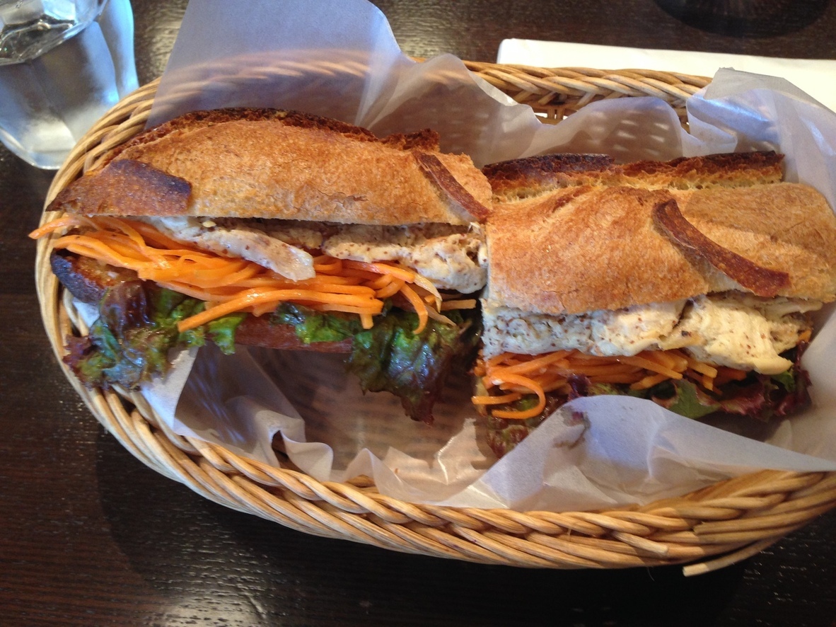 前の会社の同期と東京駅で待ち合わせ元気そうで何よりでも東京駅の外は灼熱地獄…あまり外には出たくないけどお茶をしようということで、東京駅から地下通路を通っていけば行けるVIRON(ヴィロン)に来ましたJR東京駅丸の内の地下改札→KITTE地下一階→TOKIA地下一階→エスカレーターを上がればお店がありますここのレトロドールというバケットが私も友達も大好きなので二人してバケットサンドを頼みました。プーレ・ロティ(\720+税)レトロドールにマスタードで和えたローストチキンとシャキシャキ人参のラぺ、レタスが挟まっています。チキンはやわらかく、ニンジンはシャキシャキで食感もとても良いですレトロドールは噛めば噛むほど美味しいです。後半戦は少し顎が疲れるような噛みごたえですがこれがいいんですやっぱりここのパン大好きですまた来ようっとVIRON(ヴィロン)東京都千代田区丸の内2-7-3 東京ビルTOKIA 1Fhttp://tabelog.com/tokyo/A1302/A130201/13020161/私が書いたレビューhttp://tabelog.com/rvwr/000372100/rvwdtl/56154088/