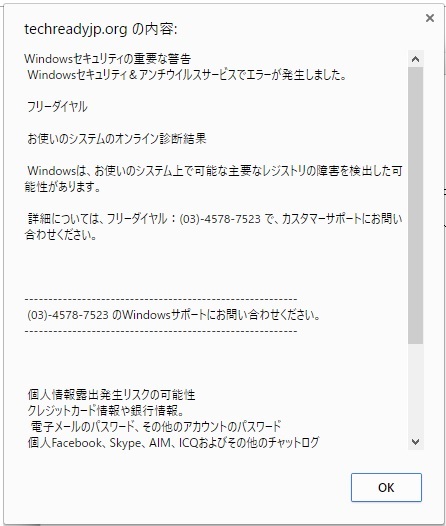 レストランを画像検索していたら、美味しそうな写真があったのでクリック。その直後に出てきた画面がこれ(笑)なんか怪しいなと思って03-4578-7523という電話番号を検索してみたら…詐欺サイトでした(気になる人は自分で検索してね。)電話すると外国人が「アプリインストールしてね~」って言ってくるらしいです。こういうことあるんですね~エロサイトなんか見ないし、こういうのあんまり見たこと無かったから自分に出てくるとは思わなかったです。Web説明に頼るWindowsのエラー画面っぽくないんだもん。こういうのでテレアポとか人員を割くとは思えない(笑)大体フリーダイヤルって書いてあるのに、03から始まるってバカじゃない。Windowsセキュリティの重要な警告 Windowsセキュリティ&アンチウイルスサービスでエラーが発生しました。なんて書かれると不安になる人もいるかもしれません。でも情報漏えいしていたら、一瞬でやられている可能性もありますし、焦った方が良くないと思います。落ち着いてね。落ち着いて読んでみると詐欺ってわかるから。どうしても不安で情報漏えいを防ぎたいなら、ネットを切断しちゃうか、パソコンを強制終了しちゃえば、とりあえずそれ以上の被害は防げるから。でもそんなことをしなくても、"すぐ連絡してね"みたいな感じのものは大手は言わないので、(テレビとか壊れても、18時までに電話しろって言ってくるでしょ?)エラー内容を検索すればいいと思います。皆さんもお気をつけあれ~ちなみにこれが出てきたときにクリックしたサイトはinshareeという聞いたことがない画像共有サイトでした。これが元凶だったのかはわかりませんが、知恵袋に怪しいサイトだと書いてありました。気になる人は"insharee マルウェア"で検索してね。でも怪しいサイトだと書いてあったのは知恵袋だけだから、このサイトのせいではなかったのかもしれません。う~ん、どこに爆弾が転がっているかわからないもんだウイルスバスター クラウド ダウンロード3年版★2ヵ月無料延長実施中!★【ダウンロード版だからすぐ届く!すぐ使える!】ウイルスバスター モバイル ダウンロード2年版★【スマホ・タブレット向けセキュリティアプリ】