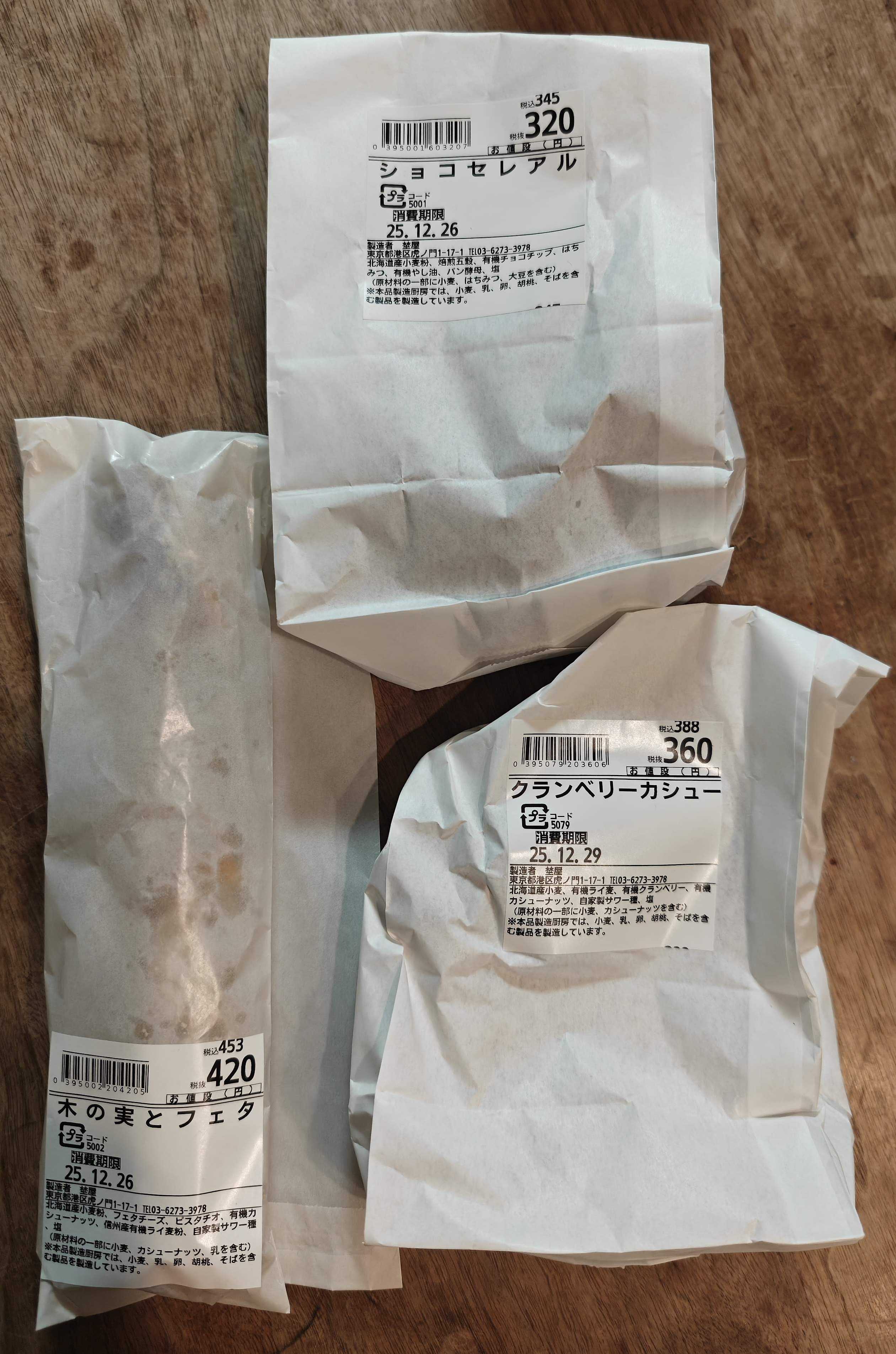 今日の朝食は昨日購入した虎ノ門ヒルズビジネスタワーの地下にある埜屋(noya)さん前に食べてとても美味しかったので再訪ですスーパー(福島屋さん)の中にあるパン屋さん自分でトングで取ってパンの名前の書いてある袋に入れてセルフでお会計今回はショコセレアル(320円+税)、木の実とフェタ(420円+税)、クランベリーカシュー(360円+税)の3点を購入↑クランベリーカシューなんて購入から4日も持つなんてすごい...この紙袋保存でいいのかなショコセレアル、木の実とフェタは翌日が消費期限だけど普通そんなもんよねレビュー〇ショコセレアル購入翌日に霧吹きしてからリベイクしていただきました。ベーグルの形だけど、持ったら軽くて、焼くとカリッと香ばしく焼けて中はふわしっとりとたっぷりとビターチョコチップが入っていて、生地にはいろんな大きさの五穀が練りこまれていました噛むと穀物の味がして美味しクランベリーカシューは息子が、木の実とフェタは主人が食べてそれぞれ美味しかったようですごちそうさまでした福島屋(FUKUSHIMAYA) 埜屋(noya)東京都港区虎ノ門1丁目17−1 虎ノ門ヒルズ ビジネスタワー B1https://www.instagram.com/noyanopan/