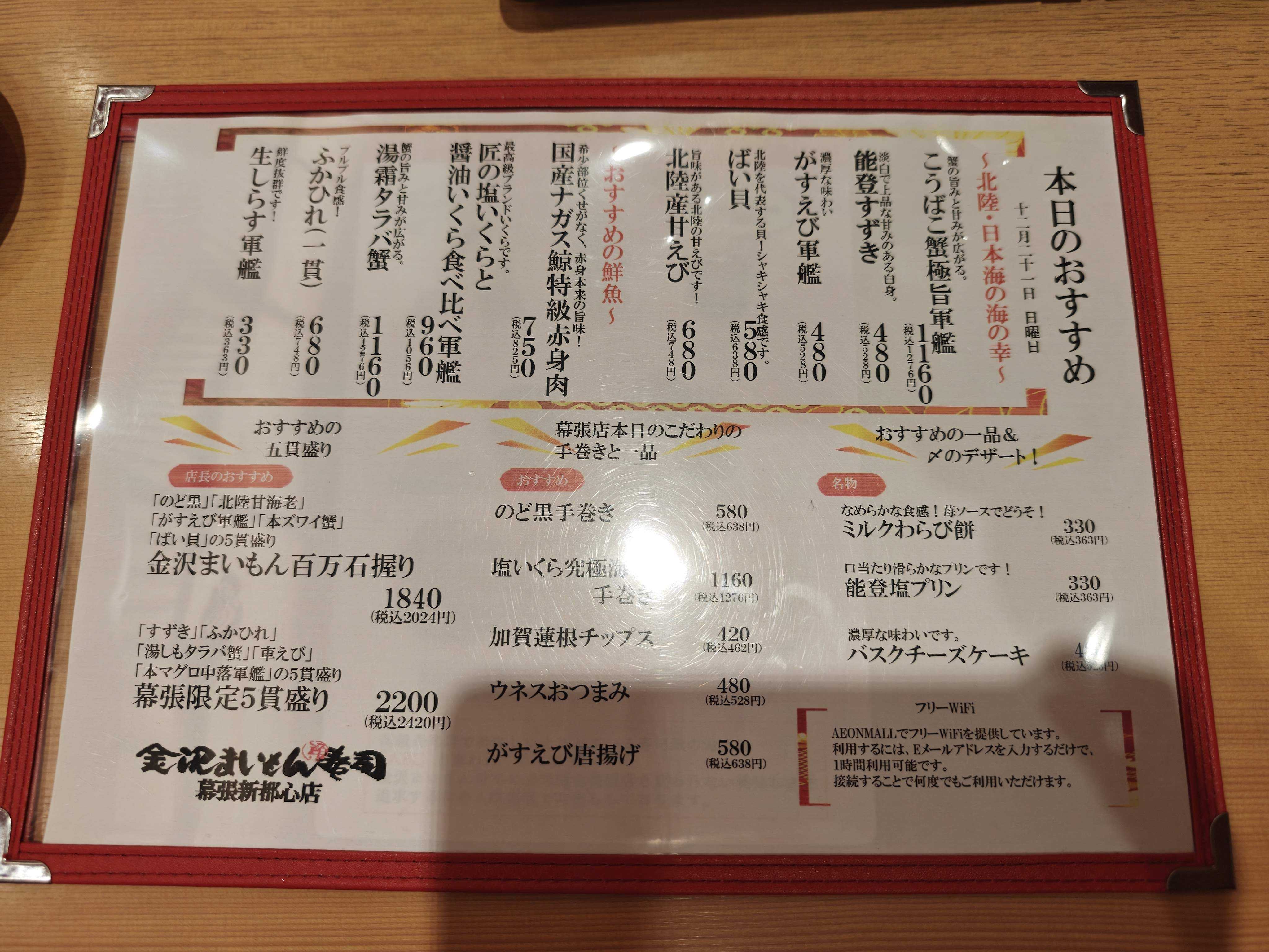 今日のランチは金沢まいもん寿司さんへ🍣昨日スシローでお寿司を食べたばかりだけど、ラインナップが全然違うからOKwお値段が高くなってきてから来る頻度が減ったけどやっぱり美味しいし、この時期の香箱蟹はやっぱり食べておきたくて…イオンにつく前にEPARKから順番待ち予約をしていたけど、1時間待ちくらいでした最近はスシローと言い、ネットで事前に予約が出来るのは便利よね↓本日のおすすめメニュー生シラス軍艦(330円+税)磯の風味が一杯で美味し手前が冬のまいもん寒鰤三昧(1260円+税)、奥が平目レモン塩(580円+税)鰤はめっちゃ脂がのっていておいしかったし、平目は上品な味わいに良い弾力で好きでした炙りしめ鯖炙り系好き真鱈白子&国産あん肝「背徳」軍艦(680円+税)とろける美味しさが2つ重なって濃厚になりつつも、カラマンシーの酸味と香りでサッパリさをまとってめっちゃ美味し真鱈白子のとり野菜みそホイル焼き(840円+税)まつやのとり野菜みそとのコラボ商品これもめっちゃ美味しかったこくのある味噌に白子って合うのね焦げが付いているのも最高そして〆にこうばこ蟹極旨軍艦(1160円+税)これこれこのお味濃厚なお味噌が混ざった蟹にプチプチ食感も混ざってめっちゃ美味し今年はカニの殻も飾りで付いてきて見た目もテンション上がりましたごちそうさまでしたどんどん高級になっちゃうけど、今年も香箱蟹が食べられて良かったです白子や鰤も美味しくて、冬は美味しいものが一杯の日本海側に行きたくなりました金沢まいもん寿司 イオンモール幕張新都心店千葉県千葉市美浜区豊砂1−1 イオンモール 1階 グランドモールhttps://www.maimon-susi.com/【Z】まつや とり野菜みそ 200g 4袋SET 【メール便】【鍋の素】