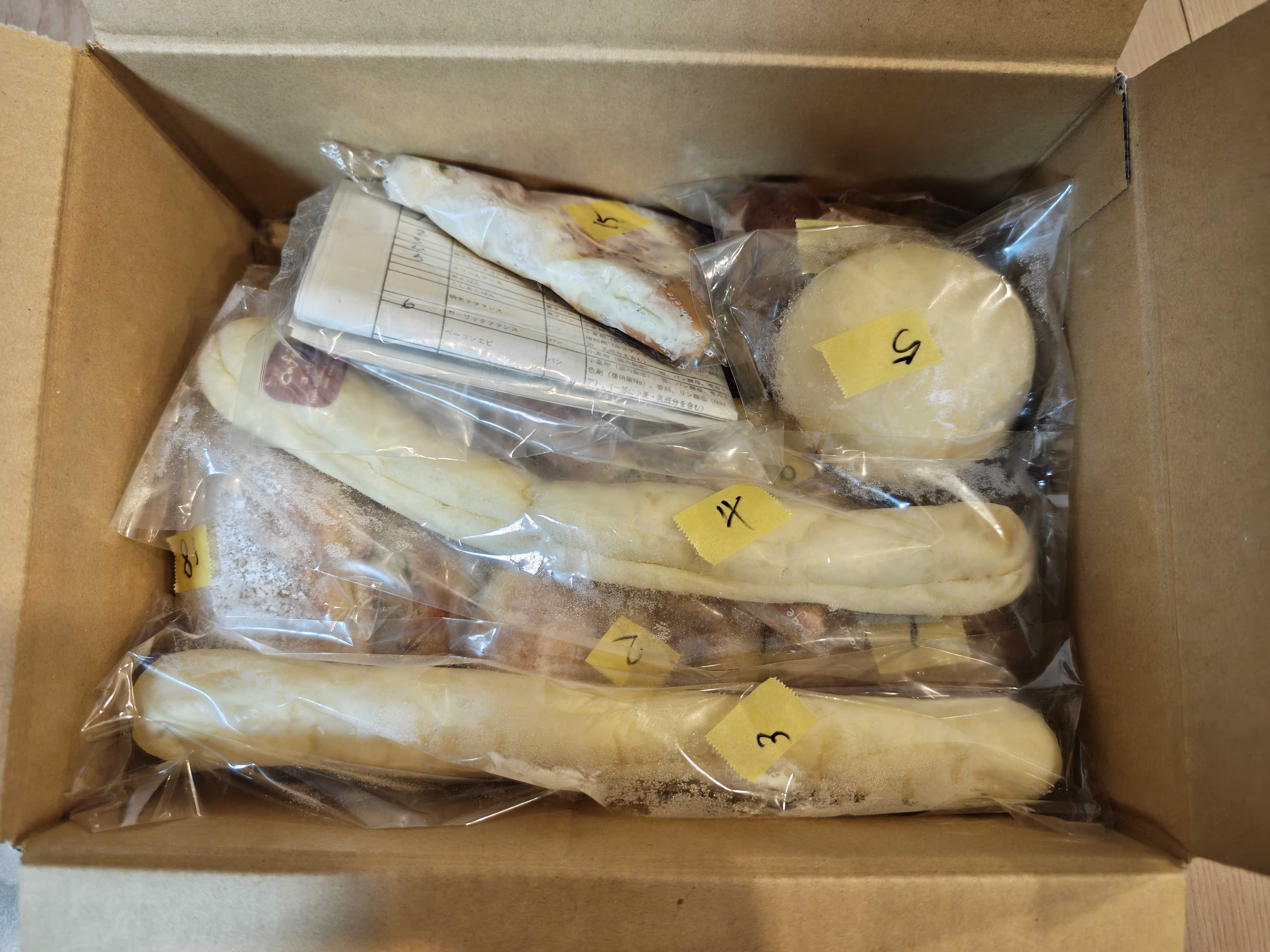 ロスパンのお取り寄せサイトrebakeでパン屋 むぎぞうさんのロスパン箱を初お取り寄せrebakeで通算39回目、むぎぞうさんは今年の3月以来2回目のお取り寄せです。11月18日に購入、受け取れない期間を設定したので12月12日に発送されて、13日に千葉まで届きました。パン職人歴25年の頑固職人が作る、こだわりパンセット(4200円千葉県までの送料込)〇コーヒークリーム〇練乳クリーム〇ホットサンド卵〇マスカルポーネピザ〇クリームパン〇ツナとベーコントマトのピザ〇コーヒーロール×2個〇コロネ〇しらす〇アーモンドマカロン〇ガーリックフランス〇アップルパイ〇ミルクフランス〇芋栗パイ〇おさつ〇レーズンパン〇クリームチーズ17種類18個入り。少し甘目のパンが多いけど美味しそうレビュー〇コーヒークリーム↑冷凍庫で折れちゃったから一番に食べましたw自然解凍→レンジで20秒温めていただきました長細い生地はふわっととろけたコーヒークリームがジュワっと染みて全体に甘くて食べやすいですコーヒークリームは苦味は無く甘くて子供でも食べられそうコーヒーの香りが落ち着きました〇練乳クリーム↑これも冷凍庫で折れてしまったので一番に食べました自然解凍→半分だけレンジで20秒温めていただきましたレンジで温めなかった方から食べてみると、練乳クリームがジャリジャリとして口の中で溶かす感じがして楽しいレンジで温めた方はジュワっとミルキーな甘味が生地にしみ込みますこれも子どもが好きそうな安心するお味でした〇クリームパン菓子パンはレンジが推奨されていましたが、表面のメロンパン生地っぽいのが焼きたくて、自然解凍後トースターで軽く焦げるまでリベイクしていただきましたホロサクっとしたクッキー生地に滑らかで濃厚なカスタードクリームが美味しリベイクしすぎるとカスタードクリームが美味しくなくなっちゃうかもと思いましたが、滑らかでとろける食感が保てましたこれかなり好きでした美味しかったです〇コロネ 自然解凍→レンジで20秒温めていただきましたしっとりした甘いクッキー生地とフワっとしたパン生地につつまれたチョコクリーム懐かしい味だけど、バターの香るクッキー生地があることでよりスイーツ感が高まってました〇アーモンドマカロン菓子パンはレンジが推奨されていましたが、焼いた方がサクッとして美味しそうと思って、自然解凍後トースターで軽く焦げるまでリベイクしていただきましたアーモンドスライスがたっぷりの表面がカリッと香ばしくて美味し生地はマカロンと言う事で、甘くバターが香ってカリフワっと軽い感じでした〇アップルパイ菓子パンはレンジが推奨されていましたが、焼いた方がサクットして美味しそうと思って、自然解凍後トースターで軽く焦げるまでリベイクしていただきましたホロサクっとしたパイ生地に、煮溶けて甘味が優しく凝縮して軽い酸味もある林檎入りシンプルなアップルパイで万人ウケしそう!〇芋栗パイ菓子パンはレンジが推奨されていましたが、焼いた方がサクットして美味しそうと思って、自然解凍後トースターで軽く焦げるまでリベイクしていただきました薄く軽いホロサクのパイ生地に柔らかい栗と芋ペースト入り〇おさつ菓子パンはレンジが推奨されていましたが、焼いた方がサクットして美味しそうと思って、自然解凍後トースターで軽く焦げるまでリベイクしていただきましたホロサクのパイ生地に芋ペーストが敷いてあって、カスタードクリームが載って、角切りのさつまいものトッピングさつまいもが甘くておいしかったです〇レーズンパン自然解凍→半分だけレンジで20秒温めていただきましたふわもちっとした生地に甘いアイシングがかかって、シナモンシュガーとレーズンとクルミが巻き込まれていましたこれシナモンとレーズンの組み合わせがスイーツって感じで好きホットサンド卵、コーヒーロールは主人マスカルポーネピザ、ツナとベーコントマトのピザ、しらす、ミルクフランス 、ガーリックフランス、クリームチーズは息子が食べましたどれも美味しかったそうですが特に息子はガーリックフランス、ミルクフランスのバリバリしたバゲット系の生地が気に入ってもう一回食べたいと言っていましたごちそうさまでしたパン屋 むぎぞう三重県桑名市新西方2丁目308https://rebake.me/shops/mie/kuwanashi/1167https://www.instagram.com/panyamugizou/パン 20個 40個 おまかせパンセット 食パン 菓子パン 惣菜パン等 冷凍パン 詰め合わせ 福袋 フードロス ぱん 送料無料 冷凍食品 ロスパン ギフト パン活 SDGs プレゼント