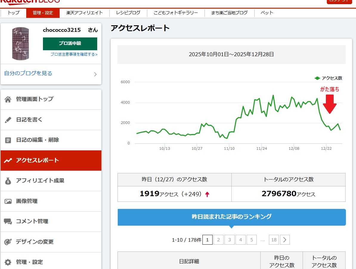 先月楽天ブログのピックアップブログになって、急にアクセス数が伸びてちょっと喜んでいたら、いつの間にかピックアップブログじゃなくなっていたみたいでアクセス数ががた落ちしてましたピックアップブログになると、楽天ブログのトップページに更新したブログが載ってそれでアクセス数が増えたみたいだったんですけど、更新してもブログが載らなくなってましたwwwいつの間にかピックアップブログになって、いつの間にかピックアップブログじゃなくなるのね…ちょっとガッカリ