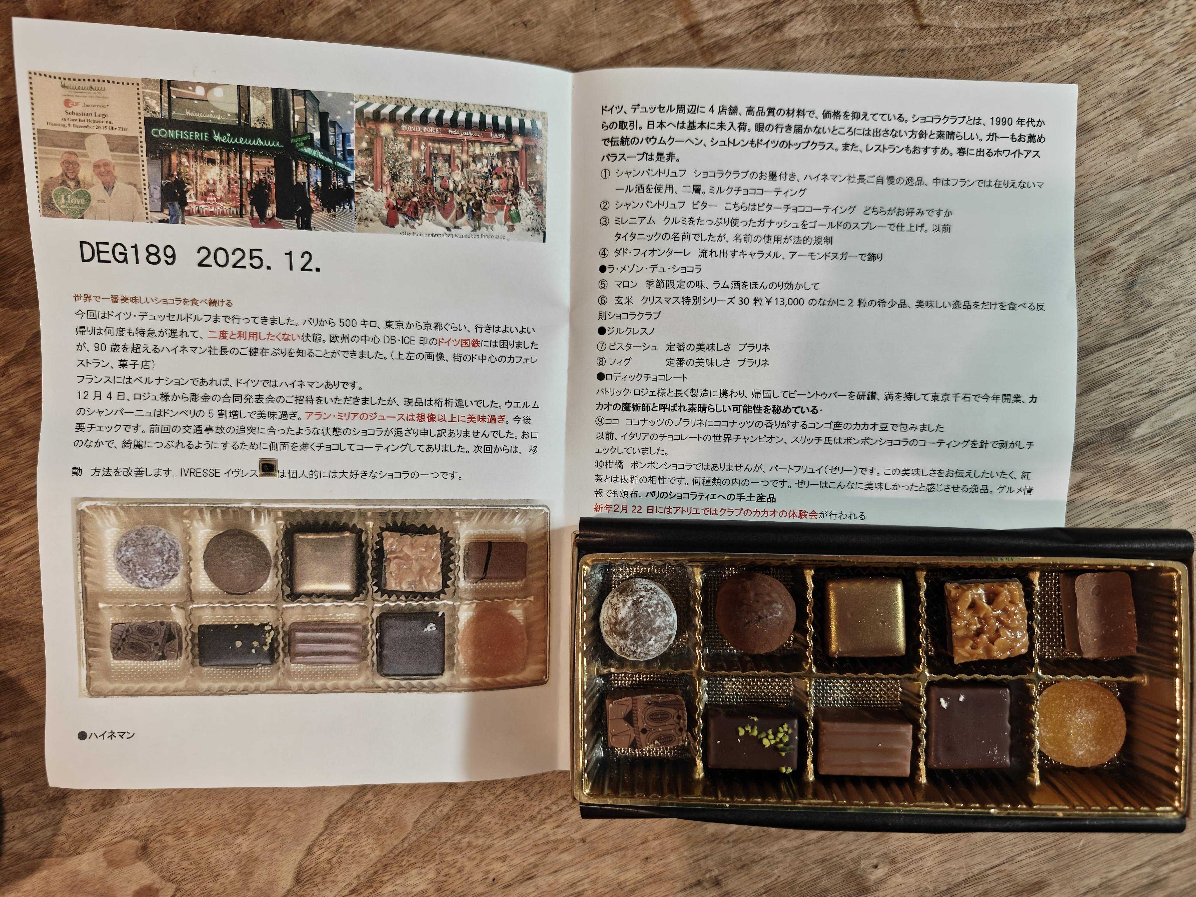 今期2回目のショコラ愛好家クラブジャポンはハイネマン、ラ・メゾン・デュ・ショコラ、ジルクレスノ、ロディックチョコレートの4店舗🍫12月16日に届いたのでお夜食にいただきましたロディックチョコレートって聞いたことあるような無いようなと思ったら、パトリック・ロジェ様と長く製造に携わり、帰国してビーントゥバーを研鑽、満を持して東京千石で今年開業、カカオの魔術師と呼ばれ素晴らしい可能性を秘めているということまだ今年の7月にオープンしたばかりの日本のお店なのね日本にもおいしいお店がどんどん増えて来て嬉しい左上から順番に①ハイネマン シャンパントリュフショコラクラブのお墨付き、ハイネマン社長ご自慢の逸品、中はフランではありえないマール酒を使用、2層、ミルクチョコレートコーティングという説明書きパリッとミルクチョコレートをかじるとトローリと出てくる滑らかガナッシュとシャンパンの奥深い風味ガナッシュもクーベルチュールもとても口どけが良くて、ミルキーな甘味がありつつ、だからこそ引き立つ、苦味を帯びた芳醇なシャンパンガナッシュやっぱりハイネマンのシャンパントリュフは美味しい②ハイネマン シャンパントリュフ ビターこちらはビターチョココーティング どちらがお好みですかという説明書きこちらはクーベルチュールもガナッシュもビターでも滑らかなのは一緒個人的には①のミルクチョコレートの方が好きだけど、こっちも間違いなく美味しい③ハイネマン ミレニアムくるみをたっぷり使ったガナッシュをゴールドのスプレーで仕上げ。以前タイタニックの名前でっしたが、名前の使用が法的規制という説明書きこれもショコラクラブで食べたことがあるやつゴールドのスプレーってどうなっているんだろう?と手に持ったら、めっちゃチョコレートが手につきました体温で簡単に溶けるから口どけがよいのよね中のクルミガナッシュはしっかりクルミで美味し④ハイネマン ダド・フィオレンターレ流れ出すキャラメル、アーモンドヌガーで飾りという説明書きこういう流れ出てくる系大好きだし、ナッツ系大好き過ぎてこれ大好きなのよねカリッと噛むと流れ出てくるコクのある生キャラメルにキャラメリゼされたアーモンドの香ばしさと甘さをミルクチョコレートが美味しく包んでくれて最高の味です⑤ラ・メゾン・デュ・ショコラ マロン季節限定の味、ラム酒をほんのり効かせてという説明書きミルククーベルチュールの中にあるのはマロンペーストかなガナッシュでは無さげで、少しざらりとするようで滑らかにミルキーに広がる栗の風味とほのかなラムの香りがとても上品⑥ラ・メゾン・デュ・ショコラ 玄米クリスマス特別シリーズ30粒\13,000のなかに2粒の希少品、美味しい逸品だけを食べる反則ショコラクラブという説明書きミルククーベルチュールとミルクガナッシュにカリカリの香ばしい玄米パフ入りのプラリネプラリネの甘香ばしさの中に玄米の香りが噛む度に広がって美味しこれすごく好き⑦ジルクレスノ ピスターシュ定番の美味しさプラリネという説明書きビタークーベルチュールにちょっと大き目なクラッシュピスタチオが入ったプラリネカリッと噛む度に広がるピスタチオの力強さに負けないショコラのバランスの良さが美味し⑧ジルクレスノ フィグ定番の美味しさプラリネという説明書き甘いミルククーベルチュールの中にプチプチのドライいちじく入りのガナッシュこれも間違いないやつ⑨ロディックチョコレート ココココナッツのプラリネにココナッツの香りがするコンゴ産のカカオ豆で包みましたという説明書きビタークーベルチュールにジャリジャリとココナッツのプラリネこちらのお店もとても口どけが良くて、力強い苦味とほのかな酸味のあるクーベルチュールにココナッツの南国チックな香りが口に広がって嬉しい美味しさでした⑩ロディックチョコレート 柑橘ボンボンショコラではありませんが、パートフリュイ(ゼリー)です。この美味しさをお伝えしたいたく、紅茶とは抜群の相性です。何種類の内の1つです。ゼリーはこんなに美味しかったんだと感じさせる逸品という説明書き溶けるっていう感じのゼリーじゃないのに一瞬で広がる柑橘のジューシーさ果肉・ピールも入っていて抜群の爽やかささすが会長の目利きです日本だし、お店にも行ってみたいな今回も美味しく頂きましたごちそうさまでしたバレンタイン チョコ 2026 ロゼシャンパントリュフ ルビー 1個 (手提げ袋付き) 銘酒チョコシリーズ チョコレート バレンタインチョコ 高級 1粒 一粒 宝石 くすみ ピンク ボンボン ショコラ お酒好き ギフト 人気 本命 義理 友チョコ 職場 カトルフィユ 広島 VD