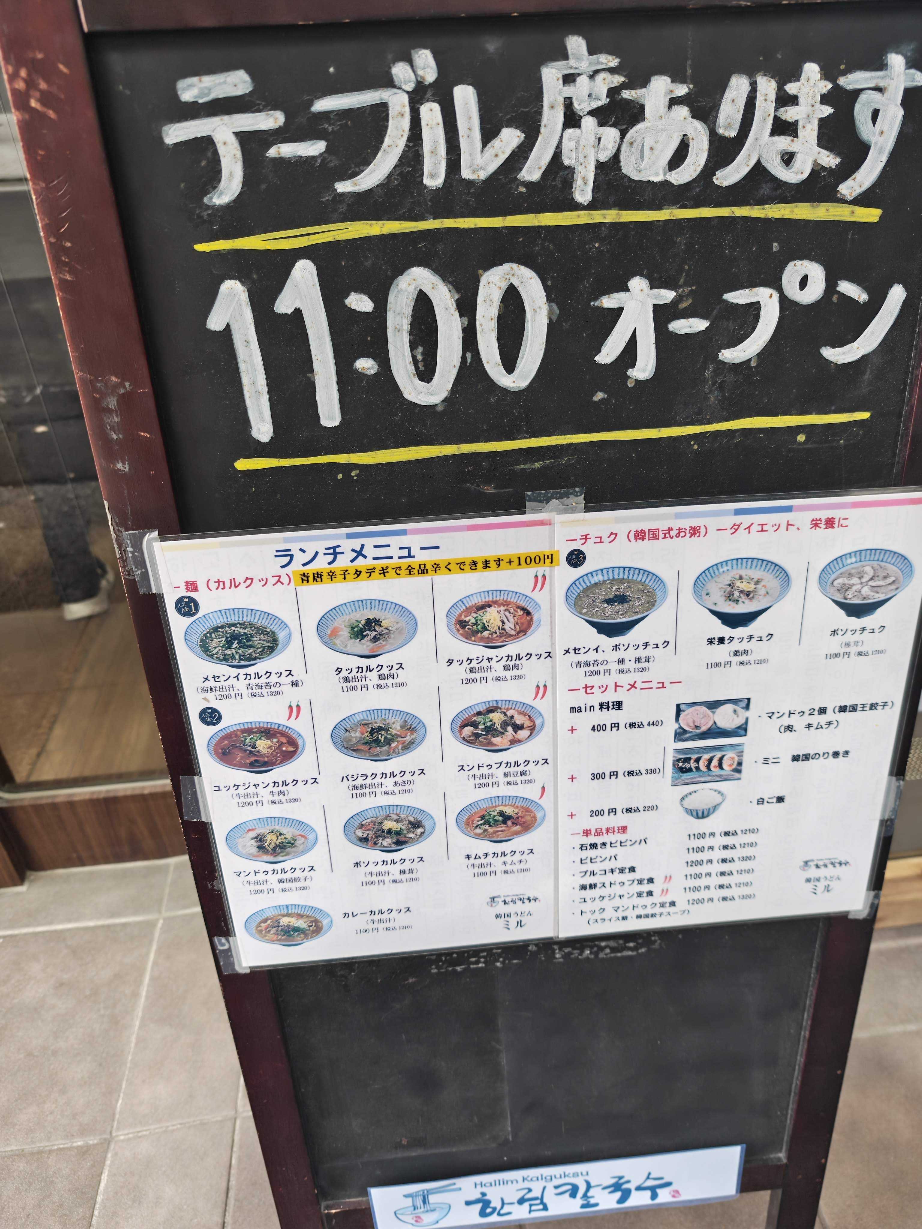 今日のランチはカルグクス(韓国うどん)専門店ハンリムカルクッス(한림칼국수)の初の日本支店韓国うどん ミルさんにdancyuに載ったお店らしいです12時10分くらいにくると6人ほど並んでいて、なかなか進まなくて昼休みの時間大丈夫かドキドキしました入店までに25分ちょっと店頭で売っているキムチや寝かしている麵の生地を眺めながら待ちます後ろに並んでたお姉さんは「私食べ途中で会社戻らないといけないかも」と言っていました時間的に混んでいたのかもと思いましたが、お店を出た12:50過ぎには10人くらいに行列が増えてました並んでいる間にメニューを聞いてくれましたでもメニューを見せられたらすぐに「どれにします?」という感じだったので、先にメニューを決めておいた方が良いと思います並び始めてから30分くらいで食べ始められましたメセンイカルクッス(1200円+税)とりあえず人気No1を選んでみましたが正解いい匂い美味しそうめちゃ熱々で、急いでは食べられませんが美味しいですメセンイ(日本では採ることができない細くて柔らかく色の濃い青のり)がたっぷりの海鮮スープこのスープが美味しい海老、大きい殻付きのアサリ、千切り人参、ネギ、薄切りじゃがいもなどなど具沢山最初長芋かと思って食べたジャガイモは薄切りで食感が面白くて味が染みて美味しいし、海鮮類も一杯で嬉しい麵は日本のうどんとそんなに違わない気がするけど、コシがあるというよりモチモチしているかな好みのお店でしたごちそうさまでした韓国うどん ミル東京都港区新橋6丁目2−8https://tabelog.com/tokyo/A1314/A131401/13296898/韓国うどんユッケジャンスープ味4食セット メール便 【送料無料】他商品と同梱不可 日時指定不可 代金引換不可/プロが選ぶ業務用 麺は1玉170gで食べ応え満点!1000円ポッキリ 韓国グルメ 麺 スープ 韓国料理 お取り寄せ ウドン