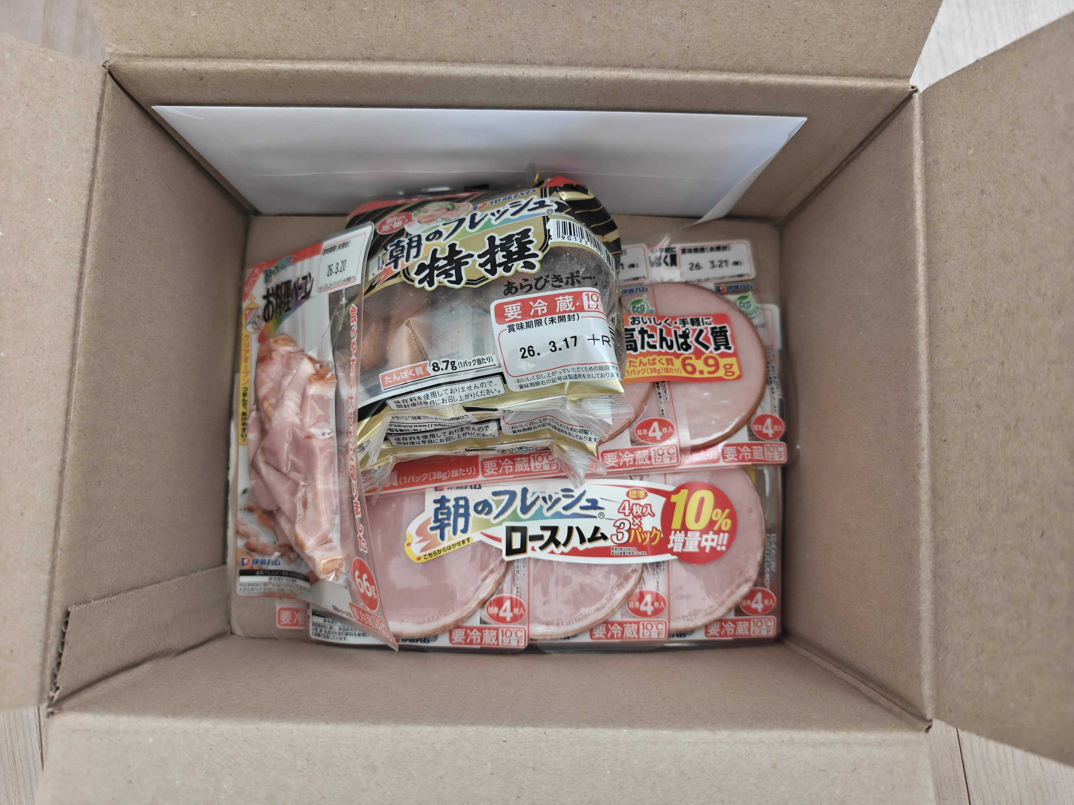 今日、ヤマト運輸のご不在連絡票が入っていて、なんだろうと思ったら伊藤ハム"朝のフレッシュ"®シリーズを買って応募し大感謝祭キャンペーンに当選してましたWチャンスの朝のフレッシュ®詰め合せ朝のフレッシュシリーズシリーズの〇ロースハム 3連〇チキンハム 3連〇ハーフベーコン 3連〇特撰ウインナー〇生ハムロース 3連〇お料理ベーコン毎朝ベーコンとハム食べてるし、お料理ベーコンも生ハムも豪華な食宅が出来て嬉しい初めてのチキンハムも楽しみありがとうございました