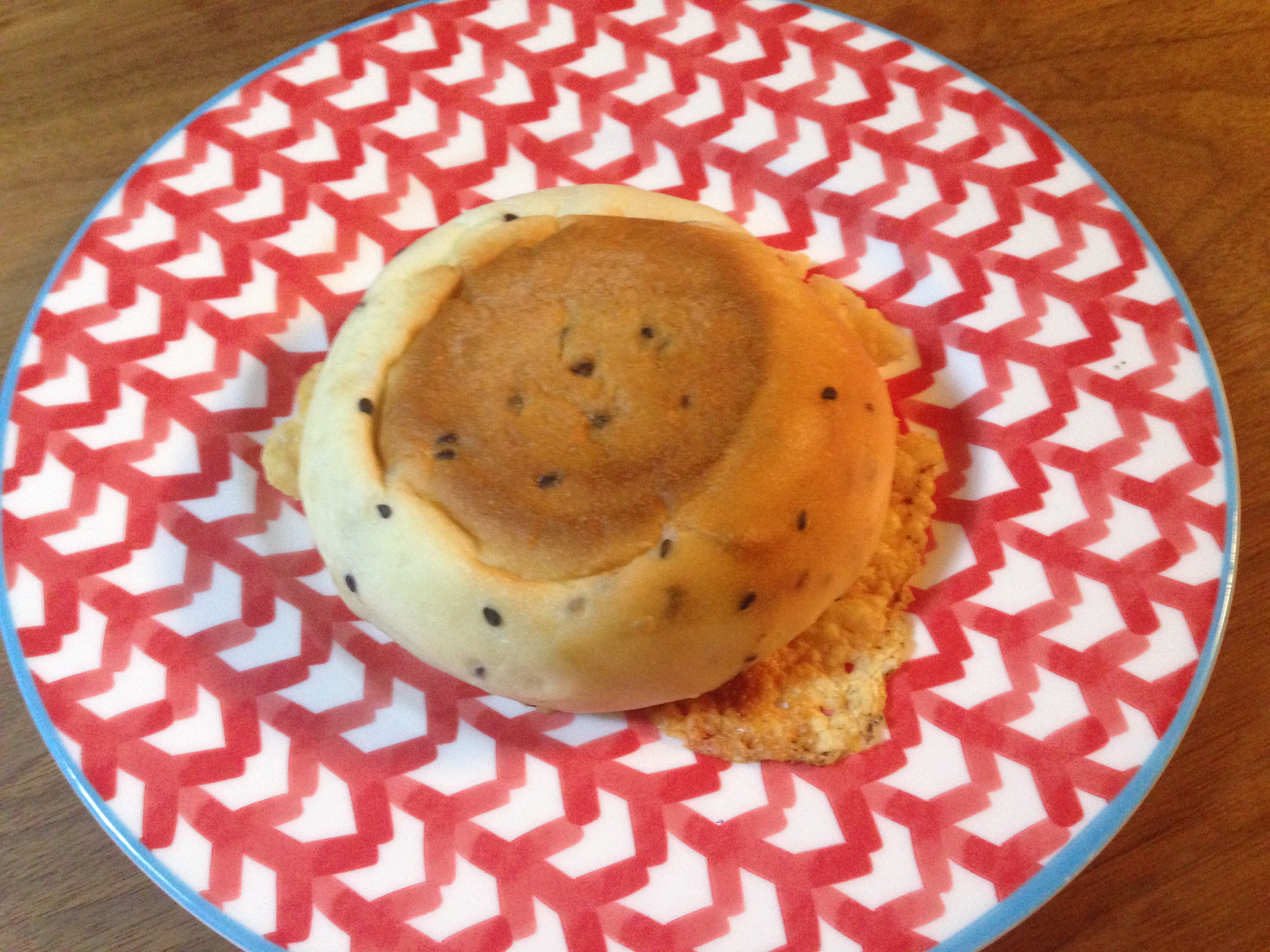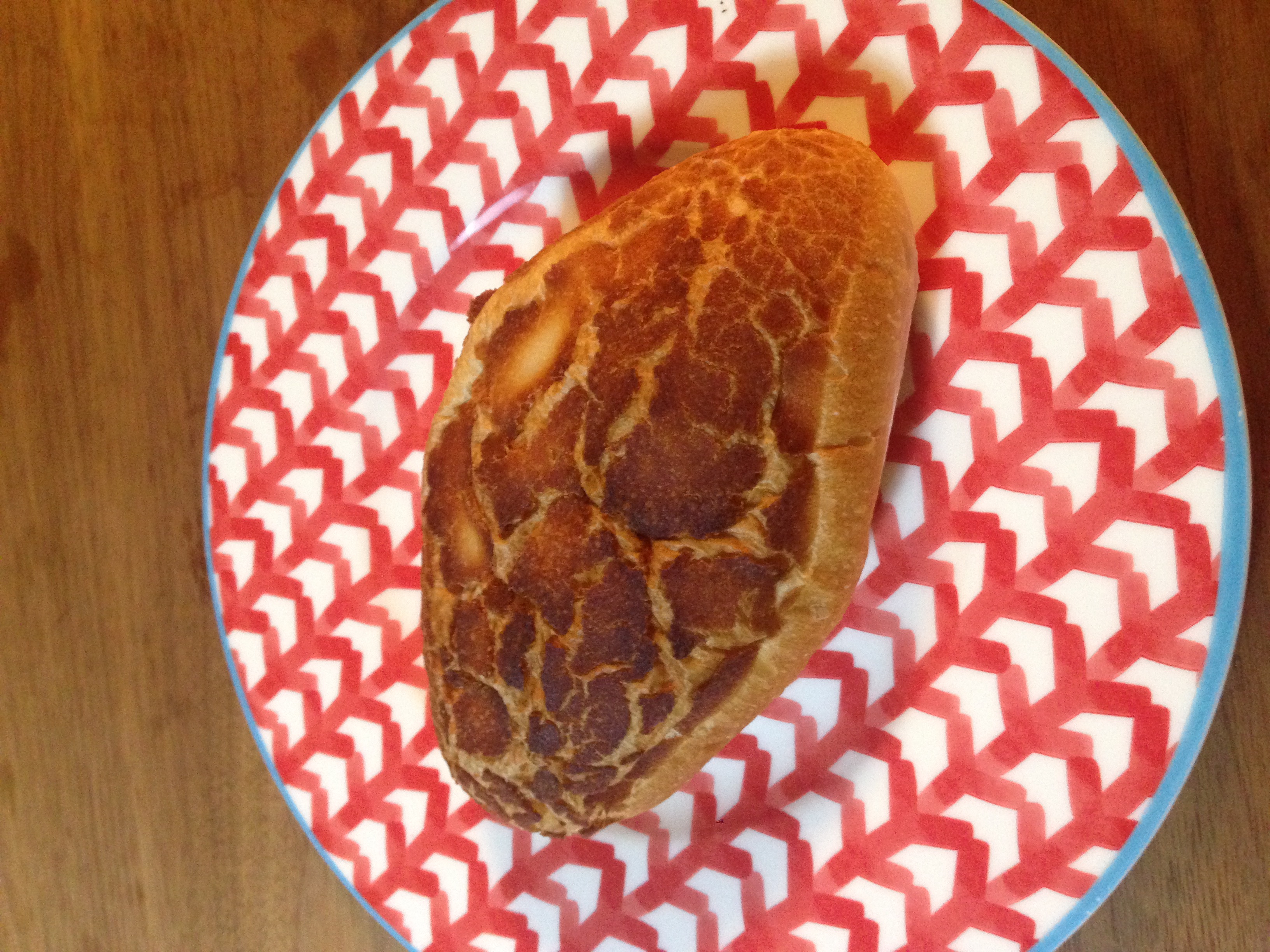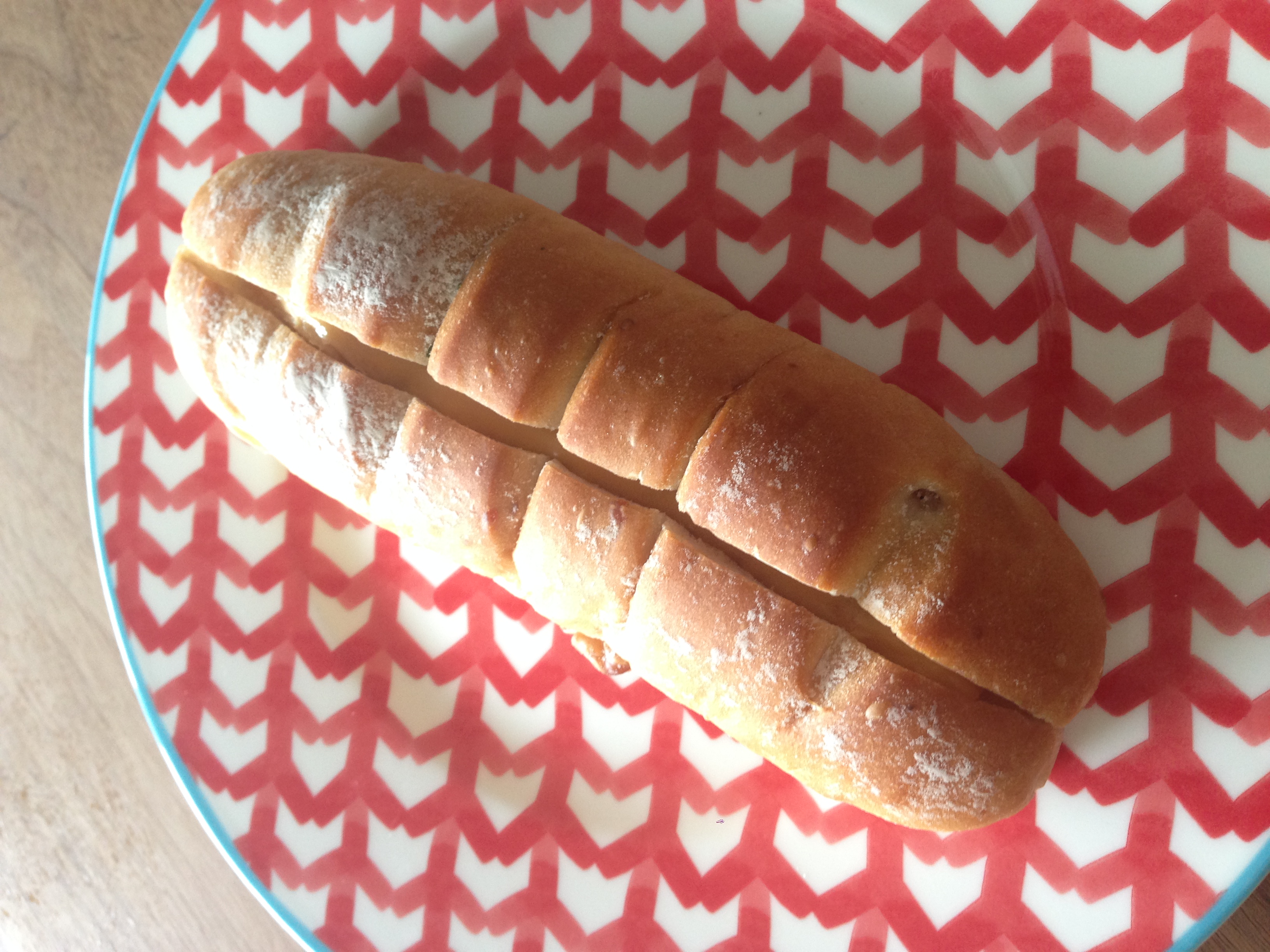 大きなクルミの塊りが入ったコッペパンにピーナツバターが挟まっていました。