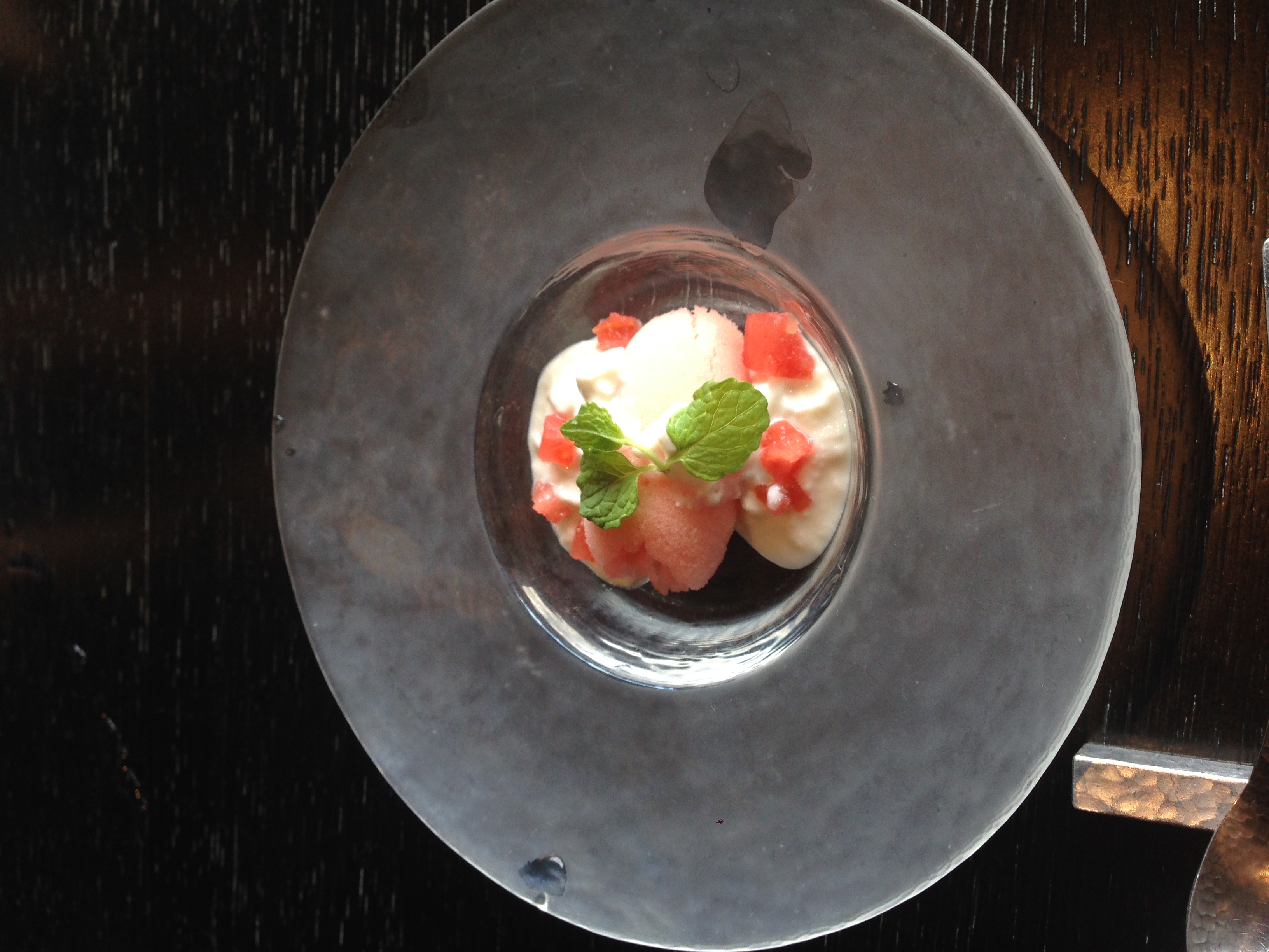 デザートのスイカのジェラートはまたテラス席に…というおすすめもあったのですが、