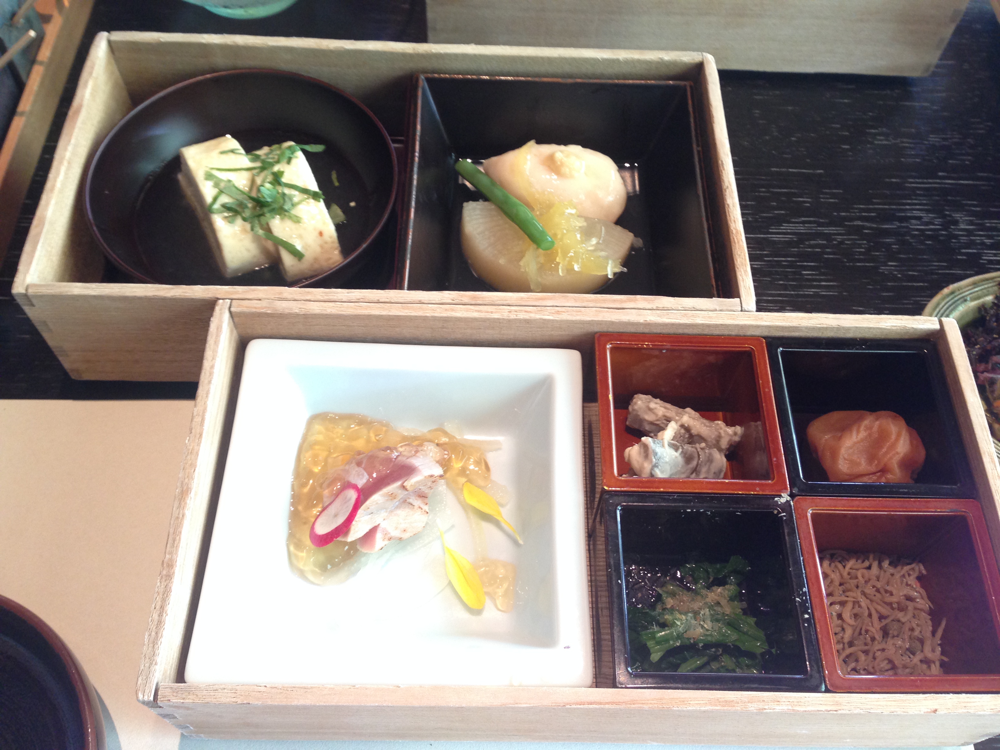 お重の中身は温かいものと冷たいものの2段構成