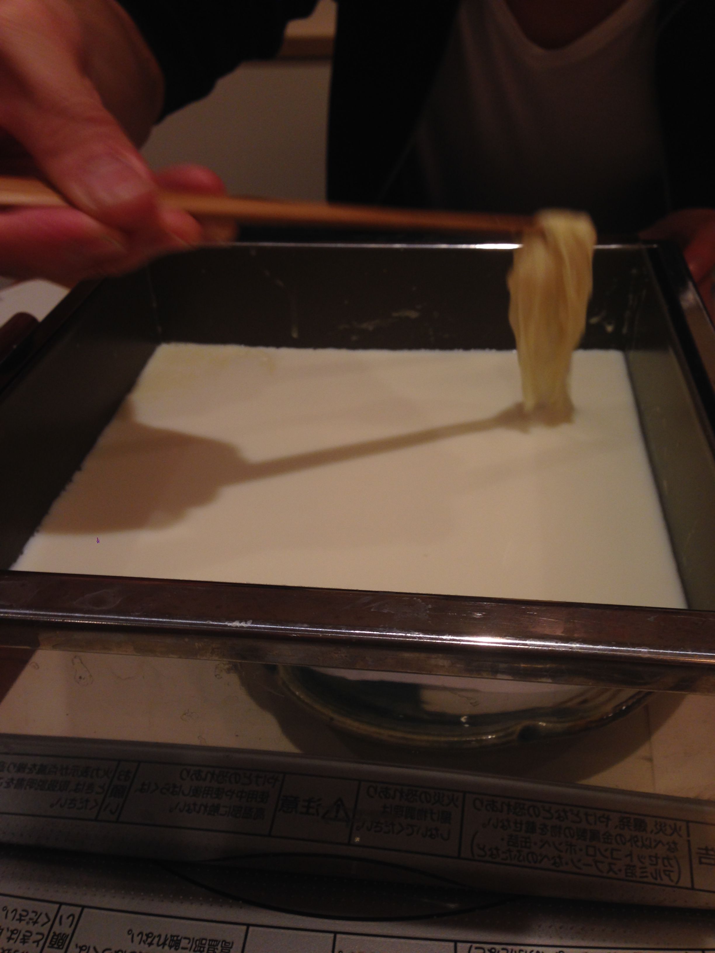 豆乳の表面に膜というかしわが出来てきたら、引き上げ、またできるのを楽しむ感じ