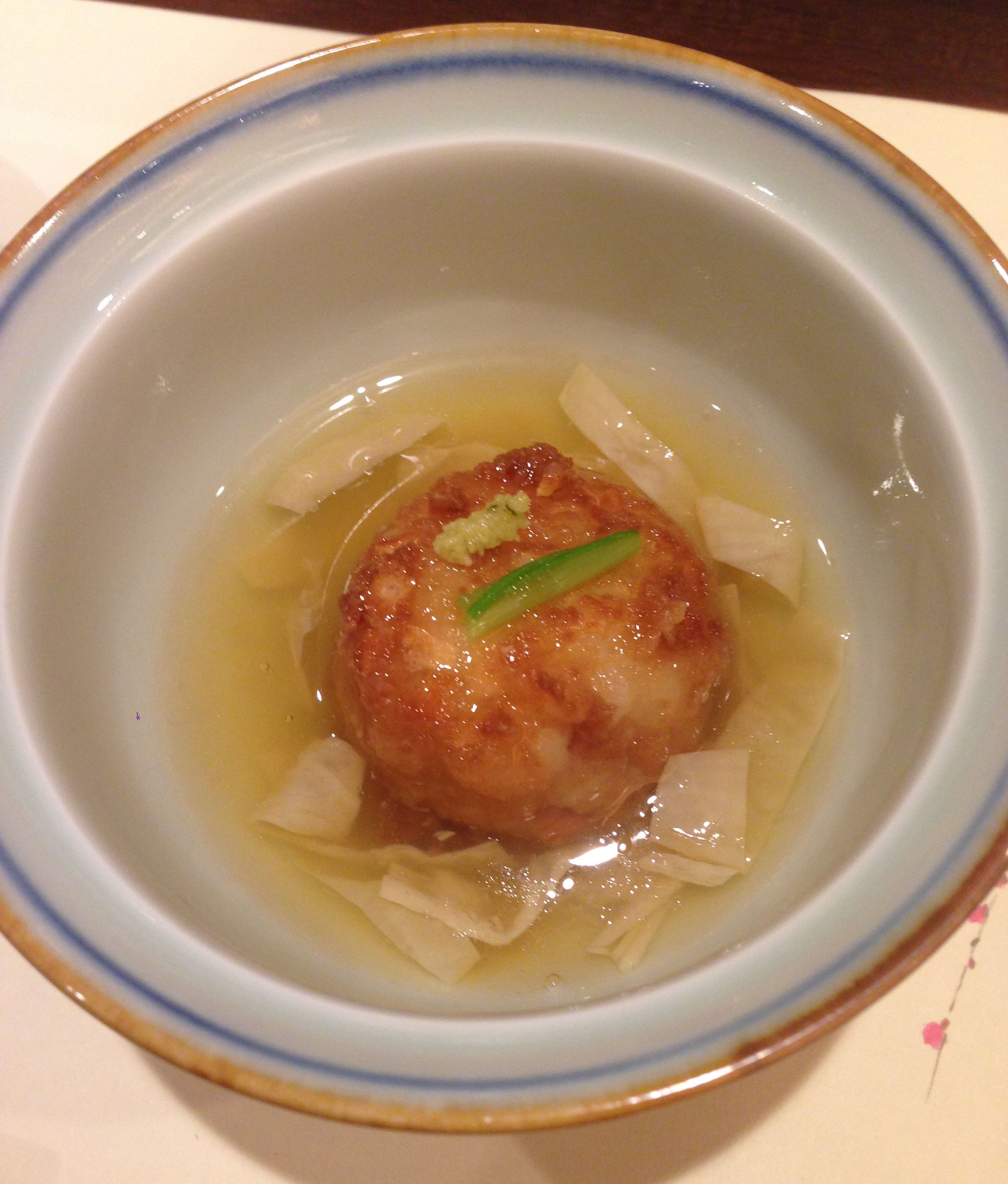 湯葉揚げは空気が入った豆腐みたいな感じ。これも油が気になるから油切りが足らないのかな