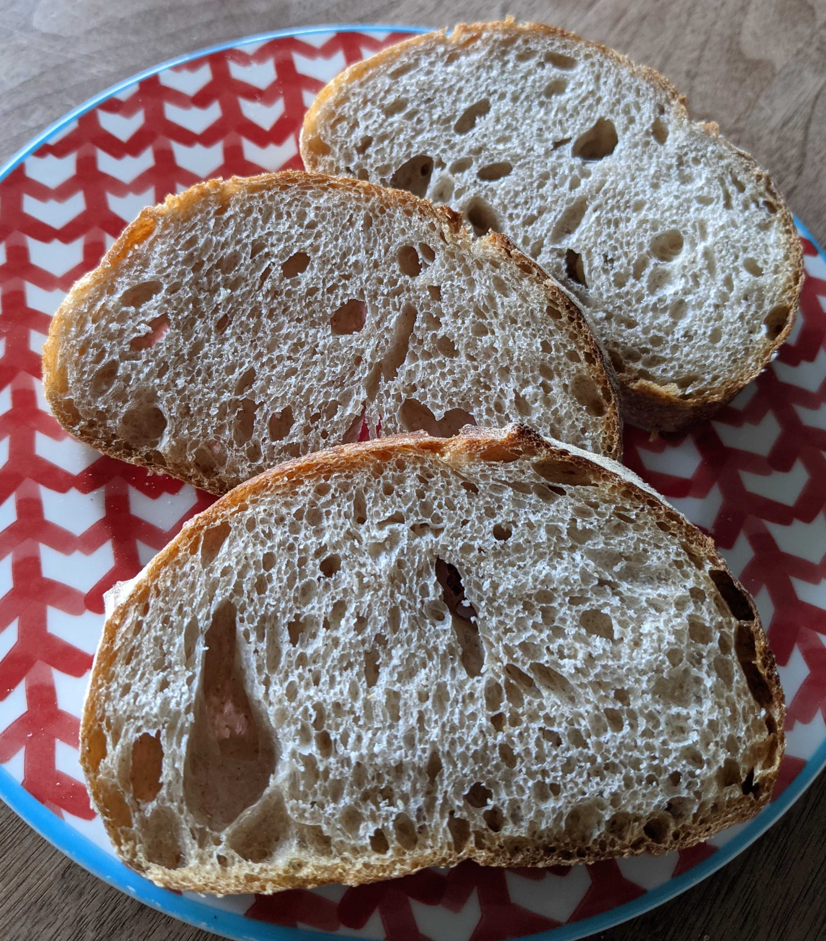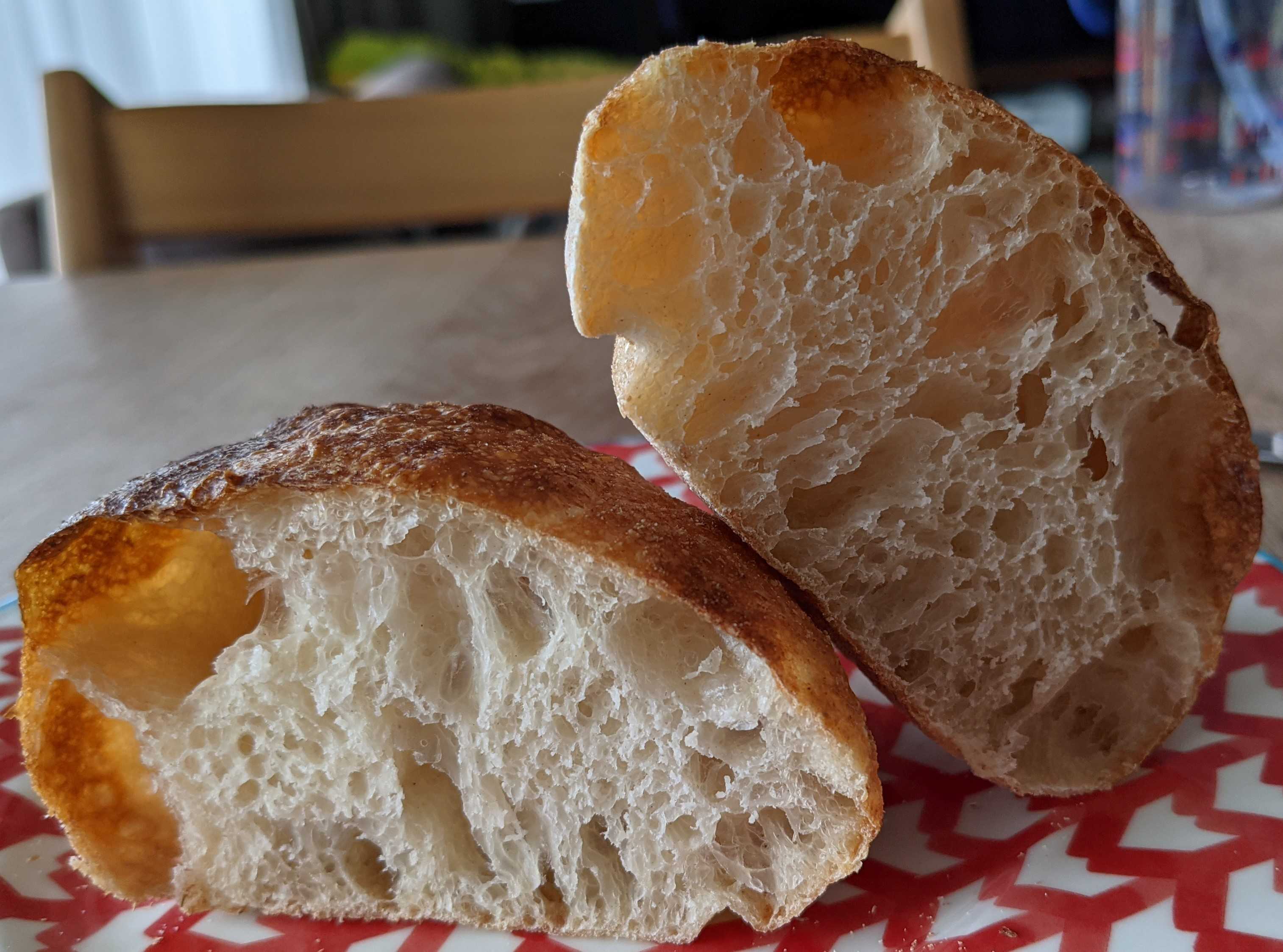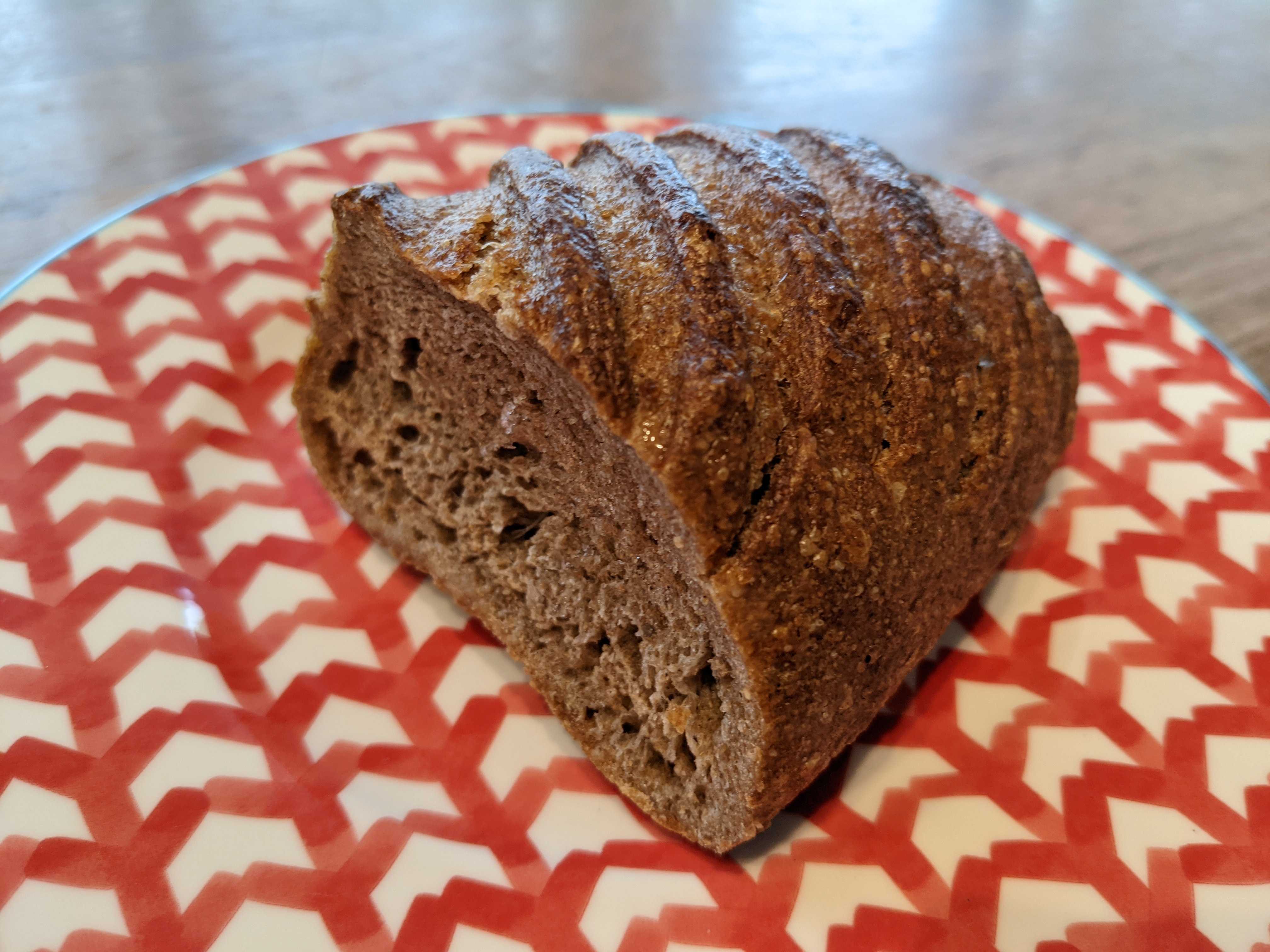 表面薄くカリッとゴツゴツ、中はしっとりむちっと詰まった感じでほんのり酸味。