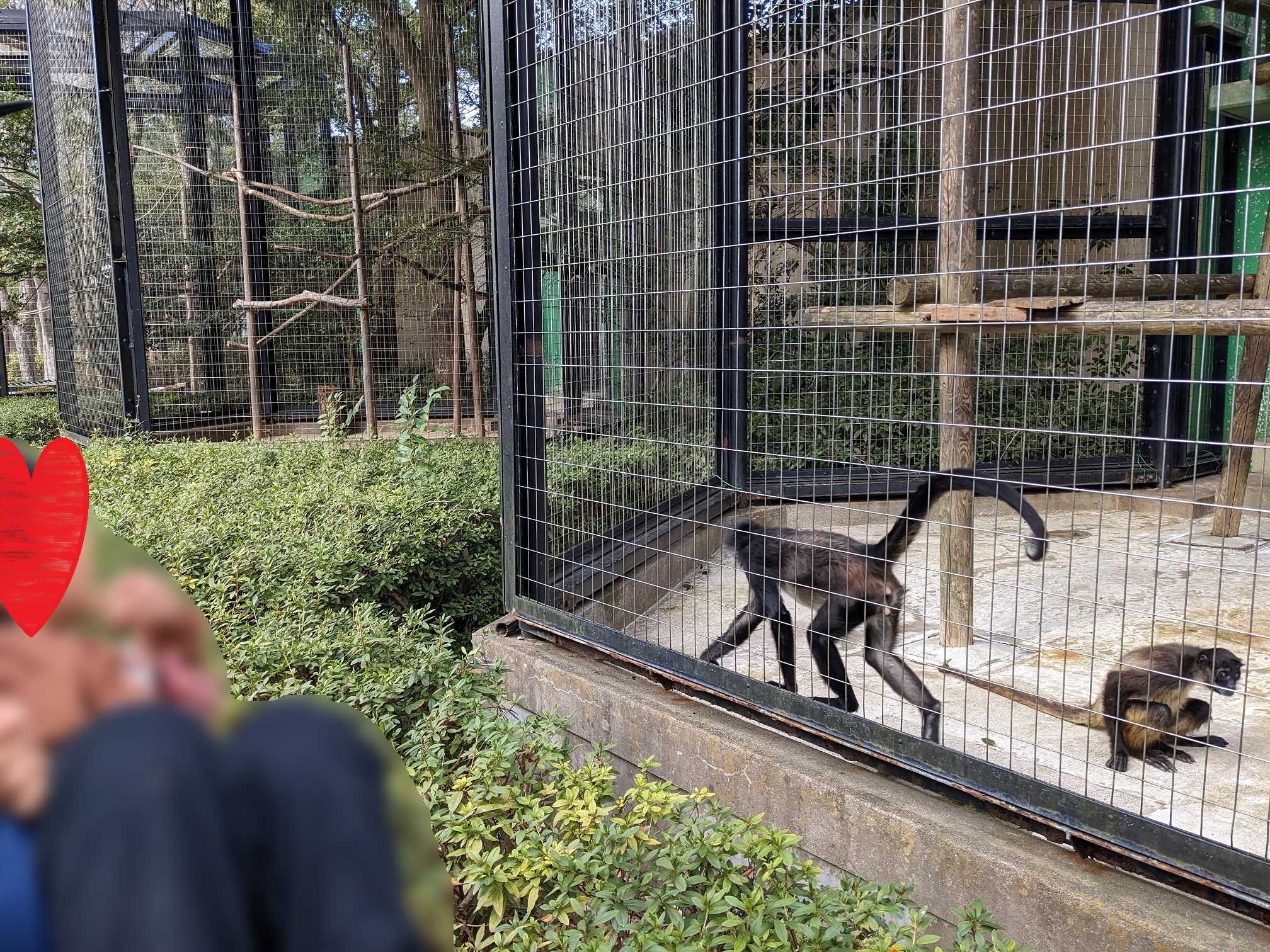 遠足で「静かにしないと動物さんがビックリして窓ガラス割ってくるよ」と言われたみたいで、場所によっては静かに見ています…