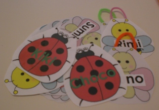 今月のレッスンテーマは『季節』と『むし』教室の名札も虫さんです↓ ↓ ↓ladybug, butterfly, beeなどなどたくさの昆虫が出てきます2歳児クラスは今まで習ってきた季節のボキャブラリーを使ってこの一年の復習習った単語をリストアップするとたくさんあってびっくりしました春からは幼稚園生これからも英語力を少しずつ積み上げていってほしいと思いますにほんブログ村