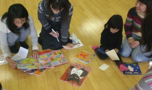 今日はレッスン後に絵本の会をしました絵本大好きママたちは実際に絵本を手に取ってストーリをチェック↓ ↓ ↓事前にKIKIと打ち合わせをしてそれぞれの絵本リストを作成していたのでリストを手渡し、個別にカウンセリングもしました気にいった本があると早速読み聞かせしてあげるママも↓ ↓ ↓ママのおひざにちょこんと座って絵本に聞き入る姿がとてもカワイイこちらはお姉ちゃんの付き添いで来た妹ちゃん↓ ↓ ↓自分好みの本を見つけて釘付けです妹ちゃんが読んでいる本はこれ↓ ↓ ↓『Who Says Woof?』動物と鳴き声がやさしいタッチで描いてあります見るだけでやさしい気持ちになる絵本CD付きも販売していますレッスンでの読み聞かせをより楽しむためにお家でもママと一緒に日々絵本に触れて欲しいと思いますまた絵本の会やりたいな~にほんブログ村