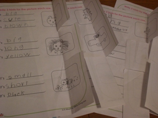 形容詞を使って物の特徴を表す練習をしている一年生。ワークシートを使ってクイズを作りましたまずは右側に簡単な絵を描きます。その後ワークシートを折り曲げて絵を隠します。切り込みを入れると一つずつ隠せます絵を描いたら習った形容詞を使って3ヒント作成クイズタイムです"It's big. It's cute. It's brown.""Is it a bear?""YES!!!"【2】"It's short. It's ugly. It's white."ハロウィンで大活躍【3】"It's tall. It's big. It's green."ハロウィンが終わったら押入れから出さなきゃ答えは一番最後一人3つずつスリーヒントクイズを作って出題しました。みんな先生になった気分ではりきってヒントを言っていきます。『書く→話す』の階段を少しずつ登っていこうね今年は親子でハロウィン満喫手作り教材はこちらをクリック↓最後にこちらをポチっとお願いしますにほんブログ村ランキング参加中!答え【2】ghost【3】Christmas tree