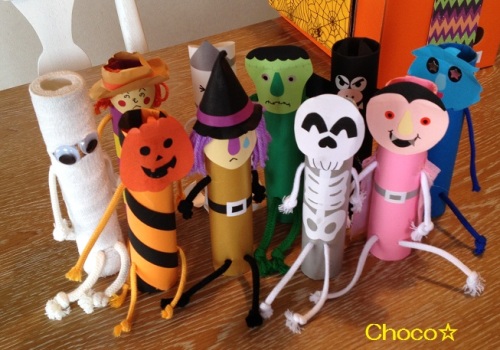 キッチンペーパーの芯で作ったハロウィン10人衆。ここのところ出番がなかったのですが2年ぶりにクローゼットから出てきました今日は来週のハロウィンレッスンのイントロとしてキャラクターを導入してからシーツの上に並べて歌いながらRoll Overごっこをしました歌はCTPの『Ten Monsters in a Bed』の替え歌です。でも大盛り上がりで激しく動いたから劣化したテープの接着部分が取れて顔が落ちたりパーツが外れたり、そろそろ修復が必要みたいです。今まで子どもたちに散々投げられたり転がされてきたもんな~ついでに新しいキャラもいれようかな手づくり教材はこちらブログランキング参加中こちらをポチっと応援お願いします