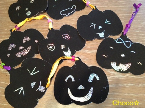 幼児クラスのハロウィンパーティで子どもたちが作ったクラフトは【きらきらパンプキン】Scratch & Sparkle Sheetを使って色んな表情のパンプキンを描きました。以前アメリカで見つけて懐かしくて買ってきたのですが今はダイソーでも売っているので手軽にお家でも作ることができますこのクラスは今月feelingなどの形容詞を学んできたのでhappyやexcited, sleepy, funnyなどなどいろんな表情ができあがりました!そして今年の絵本は『Trick or Treat!』昨日ブログに書いた【キャンディゴースト】と組み合わせて読みました。この絵本は男の子がTrick or Treatingでゲットしたスイーツをモンスターやゴーストに分けてあげるのですが、どうしてモンスターたちが群がってきたのか不思議に思っていたらバッグの底に穴が開いていて、そこからスイーツが流れ出ていたというオチつきのストーリーです。子どもたちもtrick or treatingの後に自分のバッグの底に穴が開いていないかちゃっかり確認していました!せっかくゲットしたおやつだからモンスターにとられないようにお家に持ち帰らないとね手づくり教材はこちらブログランキング参加中こちらをポチっと応援お願いします