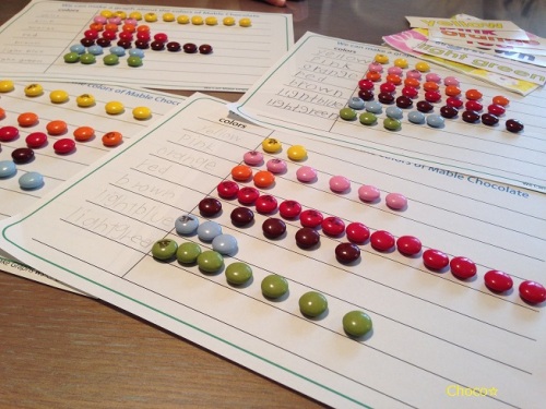 低学年クラスのグラフレッスン。最終回はマーブルチョコレートを使って棒グラフ作りにチャレンジしました!グラフを作ってみてわかったことは色の配分が均等ではないことマーブルチョコレートが1本につき38粒入っていること。特に色のばらつきにはみんな驚いたようです。普段何気なく食べてると個数の違いなんか気にしてませんもんね。でもグラフにしてみると一目瞭然です。ちなみに前回は1週間の最高気温と最低気温を折れ線グラフにしてみましたよ。この時期特有のの気温の違いがはっきりとわかるグラフになってますよね!今週からイースターレッスンが始まります。エッグハントをするからポカポカ陽気になりますように(*^▽^*)手づくり英語教材はこちらブログランキング参加中こちらをポチっと応援お願いしますにほんブログ村