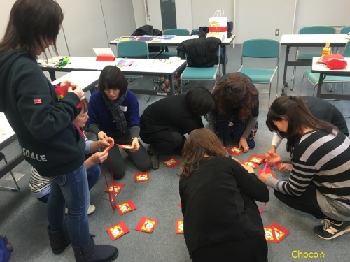 今日の東京は真冬並みの寒さ。でも室内では先生たちが今日も熱い想いで教材作りに励んでます!一つずつクラフトが出来上がるたびに嬉しそうな先生たちの姿を見て私もとても楽しくなりました。先生の足元も喜んでます(*^▽^*)Sさんの靴下可愛い~💛クリスマスワークショップも残すところあと福岡と東京3のみ。これからご参加くださる先生方もう少し待っててね~ん♪手づくり英語教材はこちら