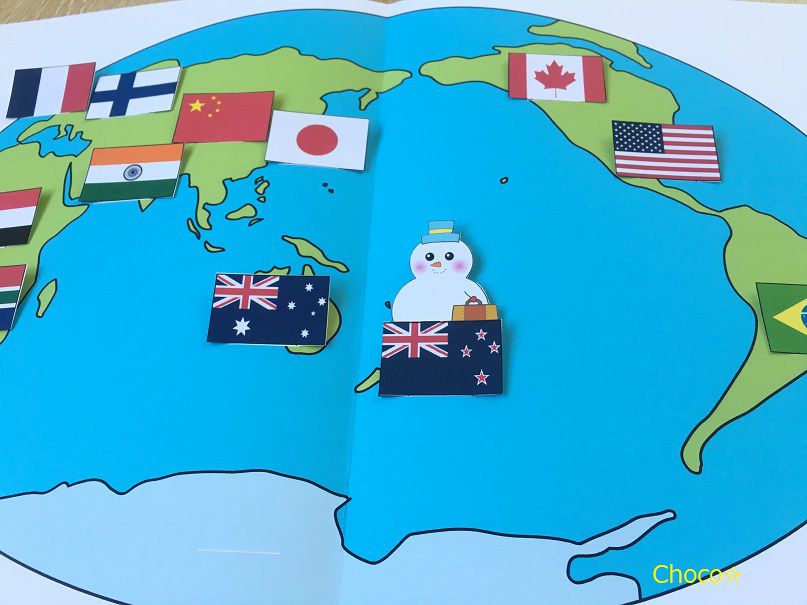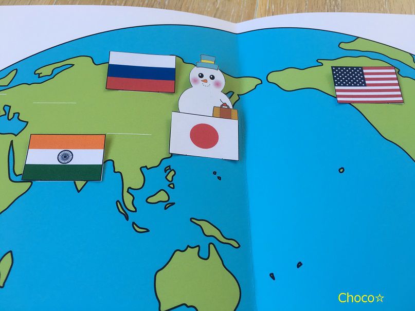 最後のページはスノーマンが世界を周る仕掛けが施してあります。クルクル~