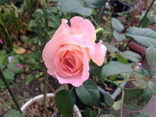 日差しに負けそうな日が続いていたので今日は雨が嬉しいな満開なのにかわいそうだけど株は元気になるね挿し木で大きくなった方は なぜか棘が少ない切り花にはいいですグロリオサを今年初めて植えましたでもピエールの陰に.....頑張ってねー