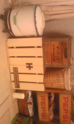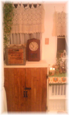 出来上がりましたぁ(^0^)/収納棚 土曜日昼から作って 今日昼からペンキ塗りして 出来上がり! 今回はアンティークっぽくペンキ仕上げましたぁ。 その棚の上にはアンティークBOXと私のおばあちゃん家で昔使っていた時計を飾りました(^^) 扉色白い方がいいかなぁ?