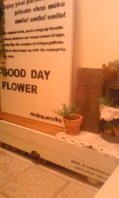 金曜日から友達と今日雑貨屋さんめぐりしよって 子供が遠足の日 うれしくて早起きするみたいに… 私も ウキウキして朝早くから目が覚めてしまってf^_^; 姫路のMOKUに行ってきました。 私、そこのお店大好きで 時間があると用もないのに 癒されにいっちゃうんです。。 店員さんも大好きで おしゃべりして いつも楽しい時間を 過ごさせてもらってます(^^) 雑貨も 洋服も素敵なんです! いつも 棚など 作る時の金具はここで買ってます! 今日もお気に入り金具を見つけいっぱい買っちゃった… まだ、作る物も決まってないのに(^^) 次に洋服! 友達と店員さん(Mさん)と洋服選び! あれもこれも欲しくなっちゃいました~。 かれこれ二時間近く お店にいました。 でね、確か今日は雑貨屋さんめぐりのはずだったんだけど 最初のお店で二人ともパワ-使い果たしちゃって ”今日は終了”となっちゃいました(>_<) 今日行けなかったお店、また違う日絶対にいきたいとおもいま~す(^^) ほんと 楽しい休みだったぁ(^O^)