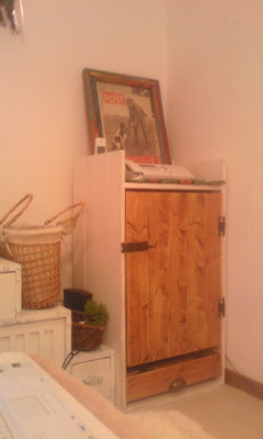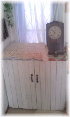 リビングの電話台を前に作ったんだけど、扉を付けてなくって カ-テンで目隠ししてましたぁ。でもね、子供がひっぱるから ”扉をつくろう!”って思い 木を買ってつくりました。 おもいたったら即実行!で 木を買いに行きワトコオイルで仕上げました(^^) できたぁ!
