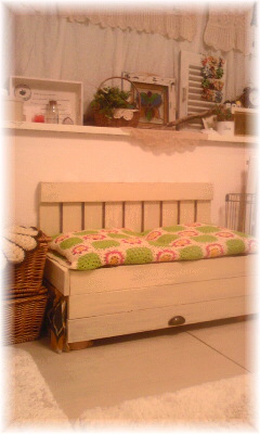 我が家には、ソファがないのです。ほんとは欲しいのだけど”狭いから ダメ どこに置くの”ってダンナに言われるの。 確かに 置く場所ないよなぁ…(*_*) でね、ベンチ&収納を作りました。 家にあった木を組み合わせただけなので 変なのですが。 気分はソファ~!(^^)