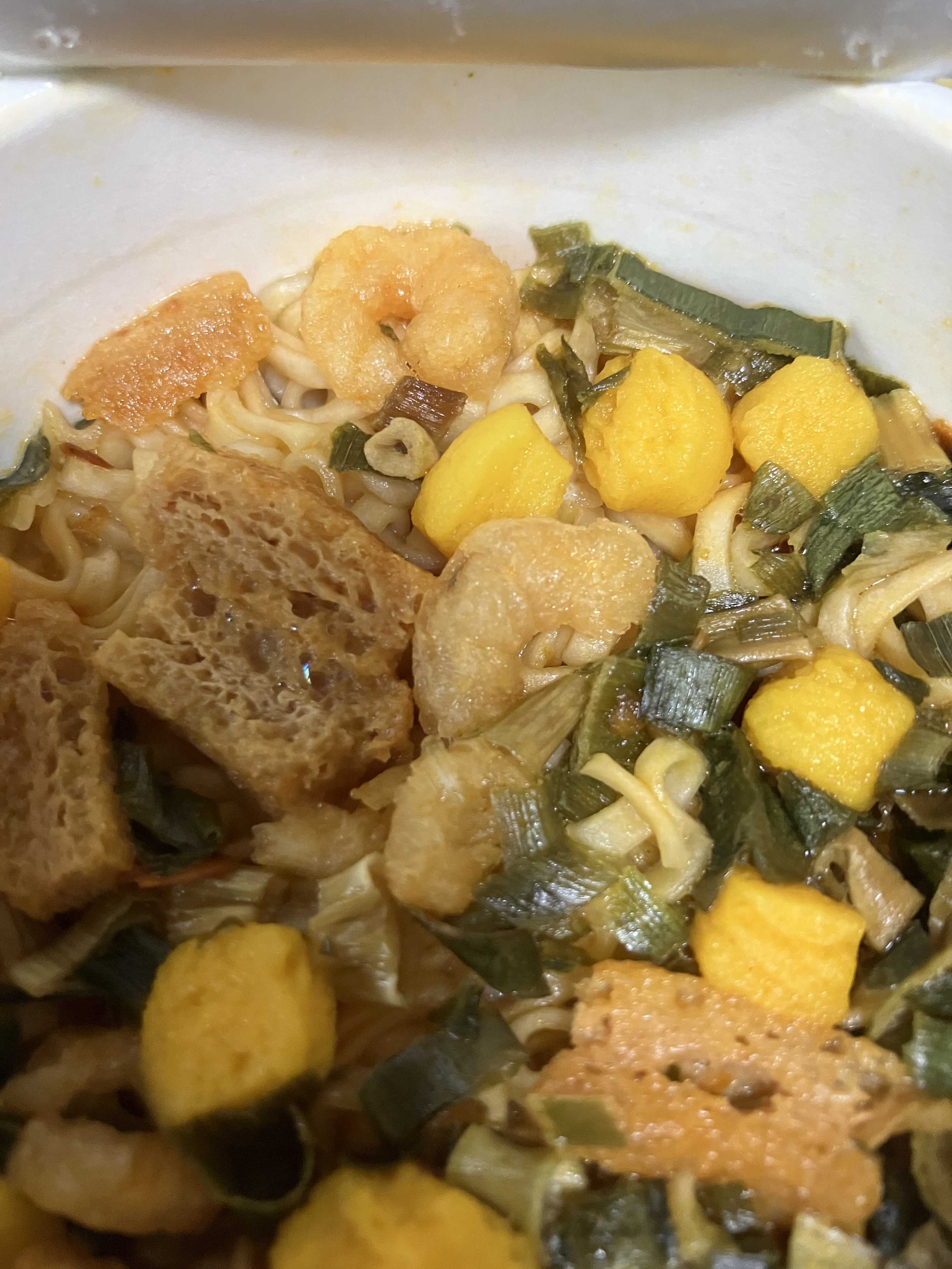 昼は明太子のおむすびとカップヌードル 香港🇭🇰から持ってきたシンガポールラクサ。香港にいたら多分食べない。ラクサっぽさは感じなかったけど辛い🥵半分だけ食べる。トマト🍅ジュースと青汁。夜はご飯🍚と焼きそば、サバの塩焼き、ワンタンスープ、キムチ、なめ茸、野菜炒め。品目は多いけど量は少しずつ。