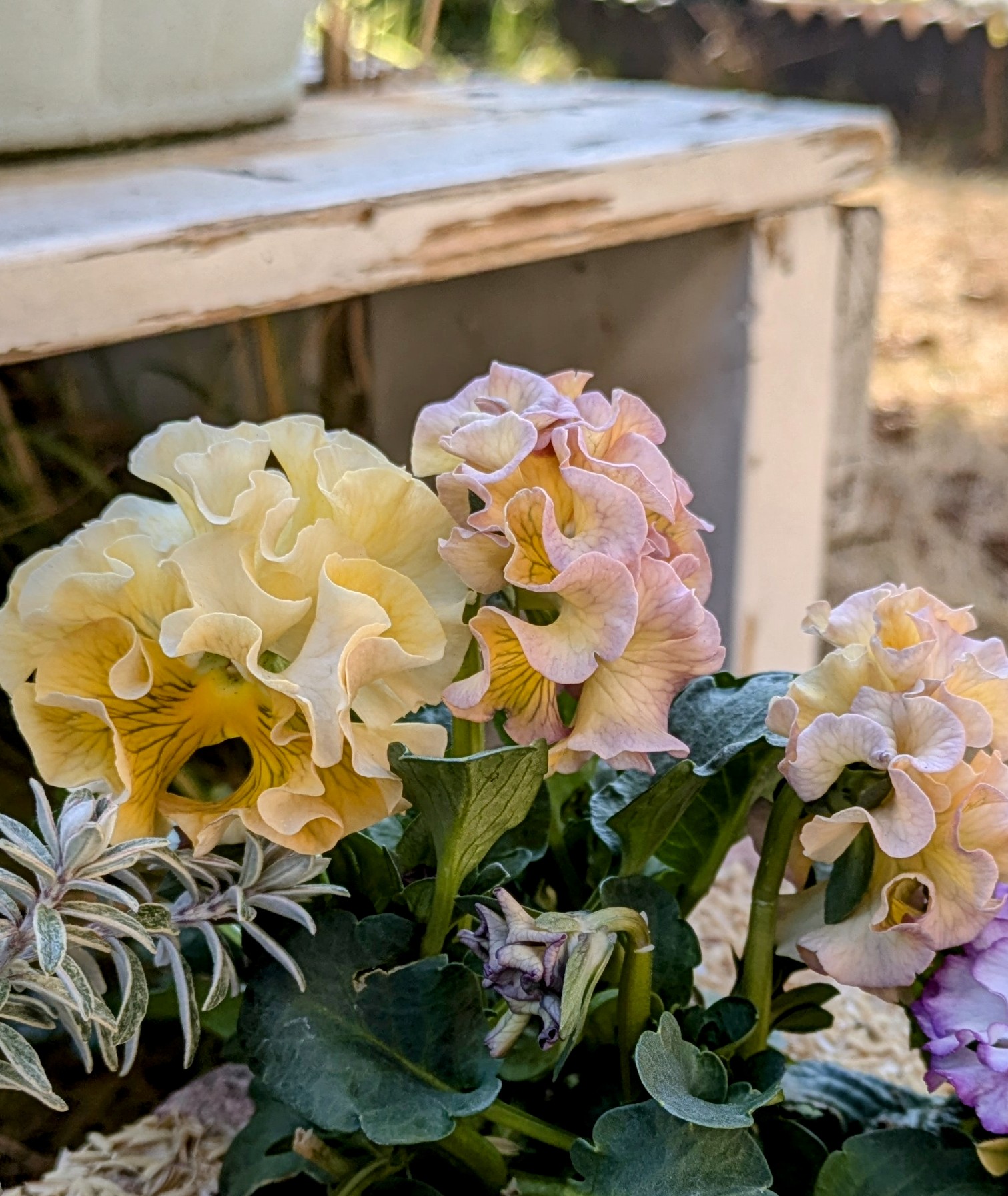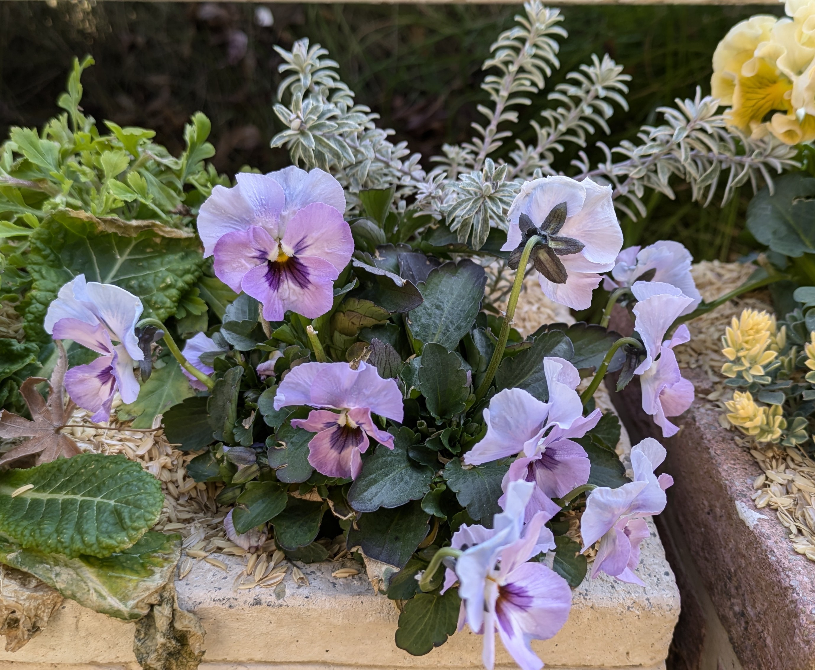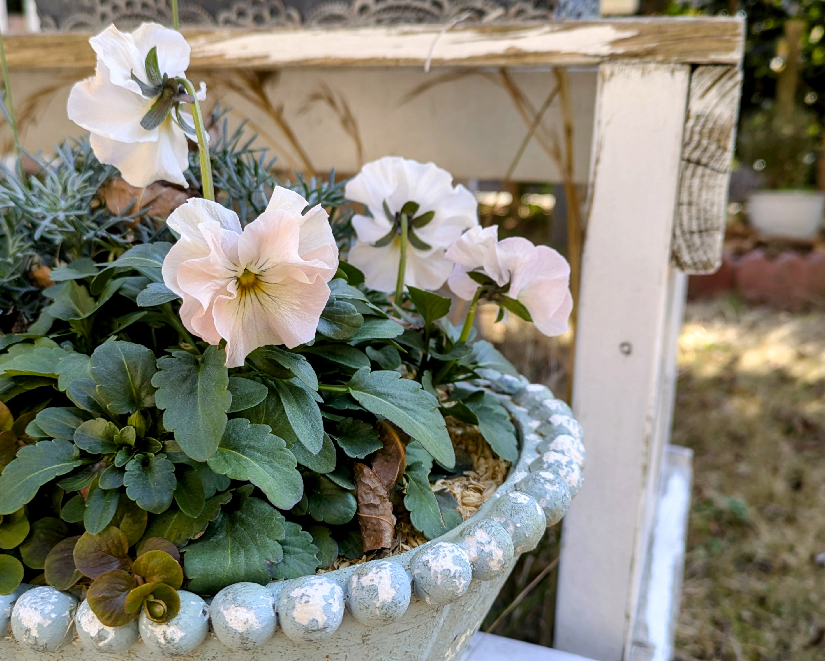 お次は、クシュクシュ感がすごいパンジーゆみラッフルを使った寄せ植え