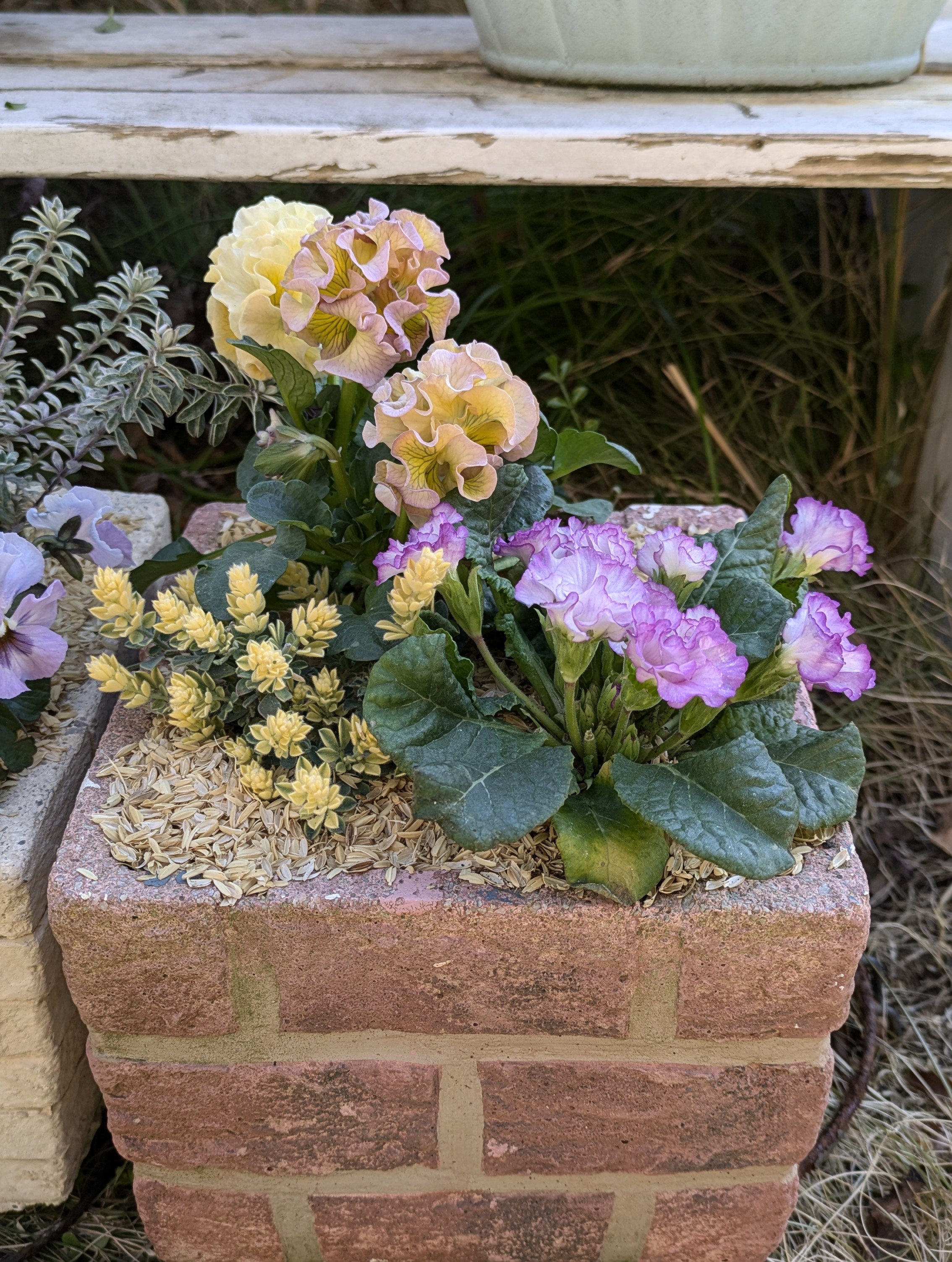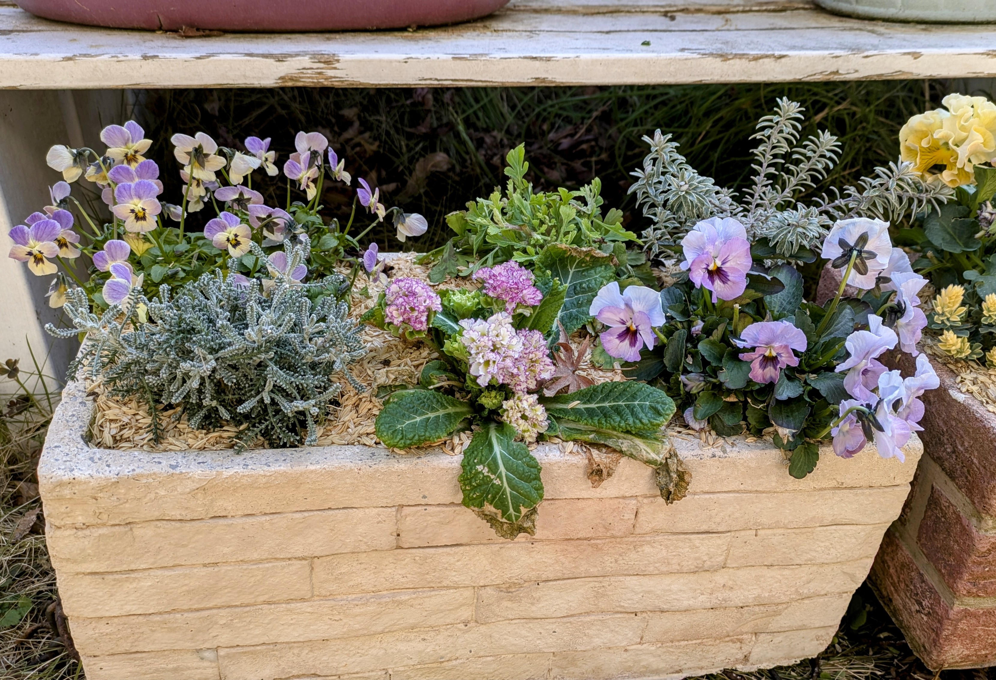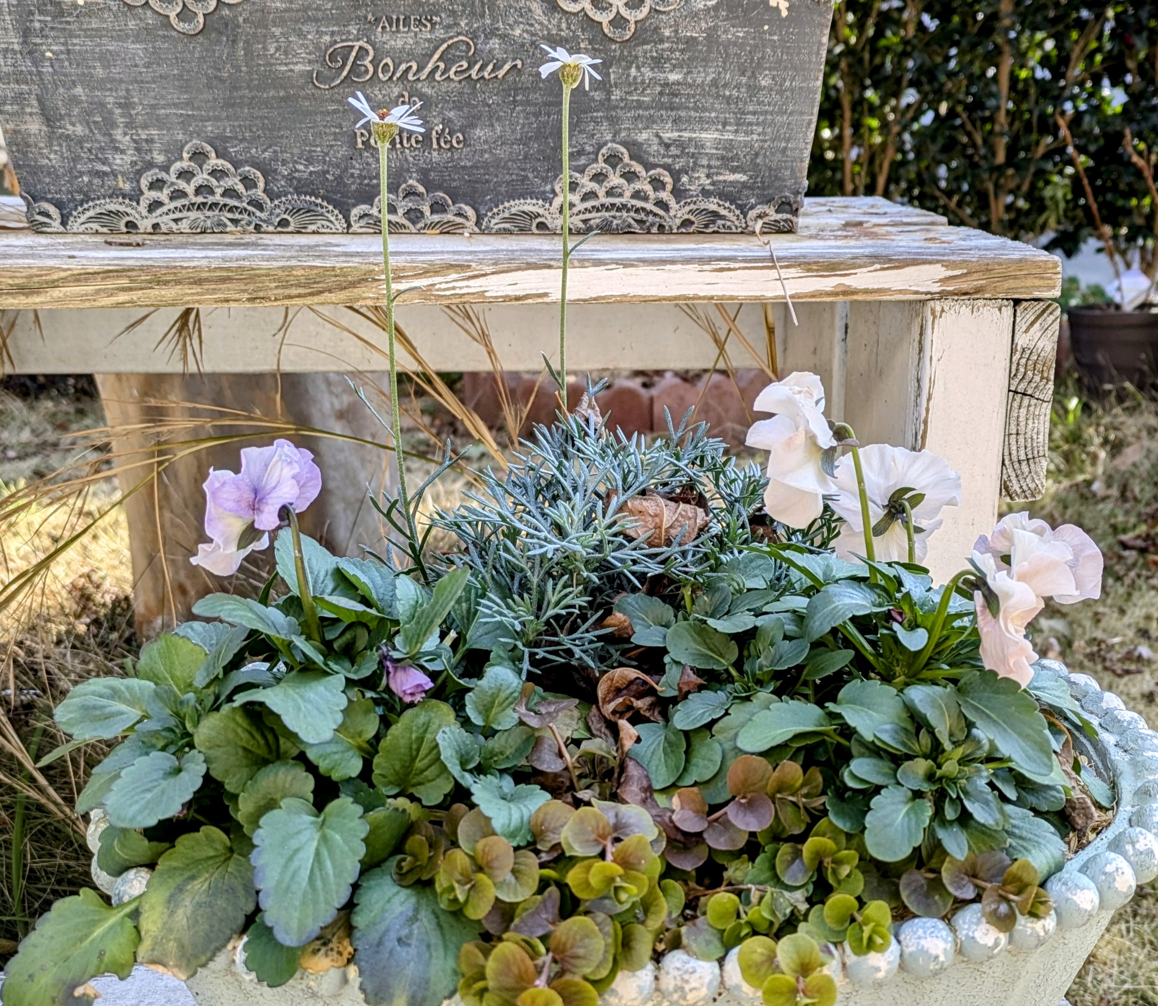 お次は、クシュクシュ感がすごいパンジーゆみラッフルを使った寄せ植え