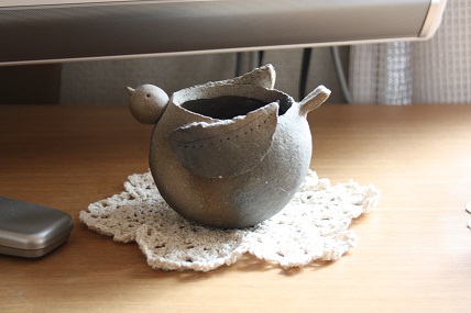 以前にお友達から、小鳥さんの花瓶をもらいました。超かわえええ~彼女は喜びのつぼを心得ているというか、いつも私の好みのどストライクな物をくれるのですそして今回、千葉に帰省した時に貰ったものが~。。。小鳥その2~も~。たまらないっこの子達、栃木の益子焼の作家さんの作品だそうです。小鳥その2は、一輪挿しにしたり、お香をたてたり出来るのです。うれしいわあ。話は変わって、千葉のホームセンターで、素敵な鉢をGet!!・・・庭のお手入れしてなくて、ボロボロなので、少し画像を加工しました(笑)右後ろの奴、右から980円、780円。超安い~!!これは1280円。これは少しお高かった。でも世間の小洒落た園芸店さんよりは、数段安いと思う。しかし、めちゃくちゃ分厚くて重いのです~っ!!普段あまり見かけないデザインなので、うれしくて即決したのですが~旦那さんが居ない内に、こっそりカートに乗せてしまおうとした私。火事場の馬鹿力で、無理やり乗せたのですよ・・・そしたら翌日、左ひざ激痛 (Theポンコツ)・・・でも実はこの子と同じデザインの一回り大きなボスキャラもありまして。。。どちらにしようか、とても悩んでいたのです。・・・いや~でも止めてよかった。あ~んなの持ち上げたら、ひざどころか脊髄やられますよ~。あぶないあぶない。。。次回は、室内の物、いきまーす!!