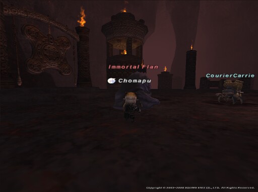 お昼過ぎにINしたら、杏さんが、ベドーで金策中^^即行で拉致してお手伝いお願いしました。黒さえ倒せば、3匹リンクでもなんとかなるのでがつがつ狩ります。杏さんのトレハンも有ったのか、20匹も狩らないうちにDROP杏さんは、金貨が旨く盗めませんでしたが、シフカメが一個おとしたので、御礼代わりに、持って帰って貰いました。その後、赤に着替えて、ジュノでクエをこなし、「さて、ヴァズにどうやって行こうか」と考えたときに、 『こんにちわ』とTELLあり(何だろうと)返事すると、サチコメを見て【闇の炎】を一緒に行きたいと^^白75さんが、ナイト53さんのお手伝いということでしたが、ソロで行けても、白さんいると安心だし、テレポも貰えるしご一緒しました。で、さくっと終わって、打ち直しを依頼(^^)vって貰えるの、来週ですか^^;PS:夜は、踊り子でソロふらふらしていたら、お誘い有って無事30才になりました。踊り子は此所までかなぁ。
